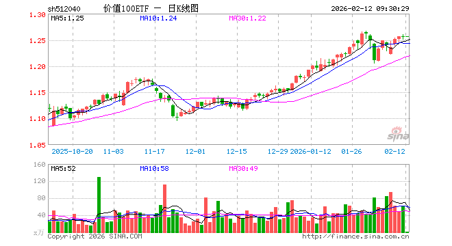 2月12日,价值100ETF(512040)开盘涨0.00%,报1.256元。价值100ETF(512040)重仓股方面,模塑科技开盘涨0.67%,亚翔集成涨2.59%,久立特材跌0.03%,云铝股份跌0.19%,伟隆股份涨0.30%,三七互娱跌0.65%,豫光金铅跌0.71%,亚普股份涨0.00%,厦门钨业跌0.26%,中国太保涨0.41%。