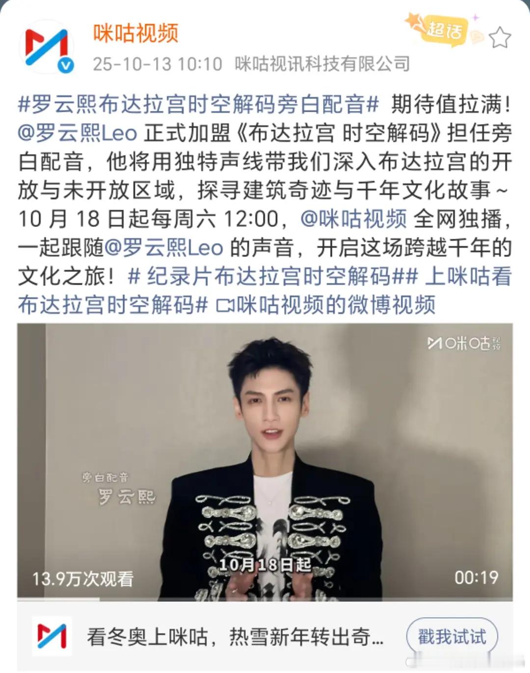 恭喜罗云熙配音的纪录片《布达拉宫 时空解码》入选广电2025年鉴🎉🎉🎉