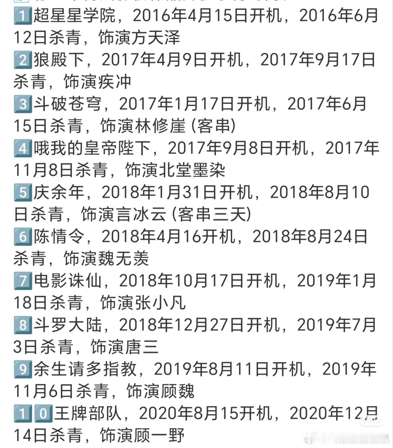 肖战的影视角色开机和杀青时间表十年,20个角色,这个肖战影视角色开机和杀青时间太