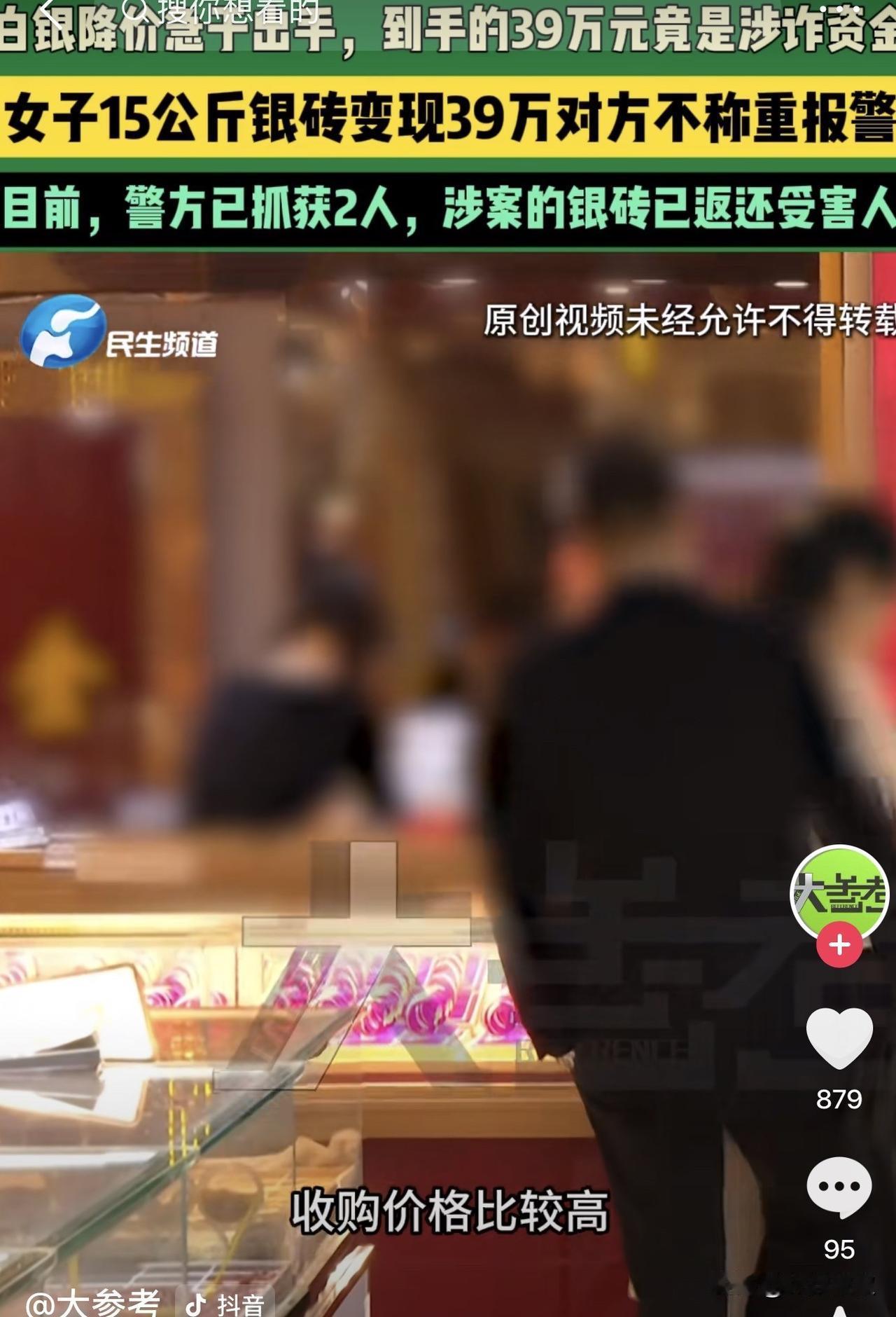 河南信阳,因为银价下跌,一女子着急变现就将15公斤的白银以39万的价格出售,可是收购人来了之后也不称重更不检查,女子觉得可疑到银行查询,结果却发现账户被冻结了,于是女子立即报了警,最终挽回了损失。 据悉,易女士手上有15公斤的白银,最近因为银价下跌,易女士就打算把手上的白银变现。 经过一番询价后,有一位收购者给出的价格相对较高,所以,易女士就决定把这些白银卖给这名收购者。 约好了时间和地点后,易女士就带着白银来到了交易地点,男子要来了易女士的银行账户后就表示会有人往里面打钱,果然没几分钟,易女士就发现钱款到账了。 可是,交易的男子拿过白银后,根本没有称重,就是大致看了一看后,就把白银塞进了车厢里,随后便开车离开。 易女士觉得哪里有些不对劲,因为按照正常的交易来说,对方最起码验一验货,称一下重量是否合适,可是男子却都这么多,而是接过白银后直接上车离开。 带着怀疑,易女士立即来到了银行查看账户,看看这笔钱到底有没有到,结果柜员告诉易女士,她的账户被冻结了,理由是涉嫌诈骗,随即,易女士立即报了警。 由于报警及时,加上落实到对方的一些信息,所以警方很快就锁定了对方,将拿走白银的张某以及前来转移白银的韦某抓获归案,而这些白银也扣押下来后返还给了易女士。 事发后有人说,其实卖家根本没办法辨认买家的资金来源是否合法,如果要用一个受害人的钱去补偿另外一个受害人,这样的结果其实没有多大意义。 还有人说,但凡称重一下,墨迹一下,仔细核验一番,让对方觉得是正常的交易,都不会这么快引起怀疑,你倒好,直接搬上车就走,装都不装一下。 也有人说,算了算一克26块钱,也不是多贵,也没有在交易中额外获取暴利,就是普通的交易,凭什么冻结别人账户。 其实,易女士及时报警,真的为自己挽回了巨大损失。 一般而言,由于是涉及诈骗,即受害人在被骗之后,将钱款打到了易女士账户上,而骗子又通过购买易女士财物的方式,达成了一个闭环,这个时候受害人实际上是易女士和打款的人,虽然易女士暂时收到了货款,但是因为货款涉嫌诈骗,所以就只能冻结这笔钱。 如果易女士想要解冻,按照现在一些地区的做法,易女士就要将这笔涉嫌诈骗的退还之后,才能够将其解冻,甚至不排除一些地区直接强行将这笔钱转走后,还给打钱的受害人,所以,易女士在第一时间报警,警方抓获了嫌疑人,也为自己挽回了损失。 当然,因为易女士毕竟是正经售卖白银,自己如果确实不清楚的话,那么,易女士也应当受到保护。 按照《关于办理诈骗刑事案件具体应用法律若干问题的解释》第十条规定:他人善意取得诈骗财物的,不予追缴。 本案中,易女士将白银以市场价售卖,并不是远高于市场价,所以,在易女士的角度上,这是正常的交易,属于善意取得,那么,易女士也有权要求解封账户。 最后,还是提醒大家,这种大额的白银交易,还是要去正规场所,而骗子就看中了街头交易,以此骗取他人财物。 对此,你对本案有什么看法? —————————— 关注我,带你评析法律热点,关注冷暖人生。 文章原创,抄袭必究