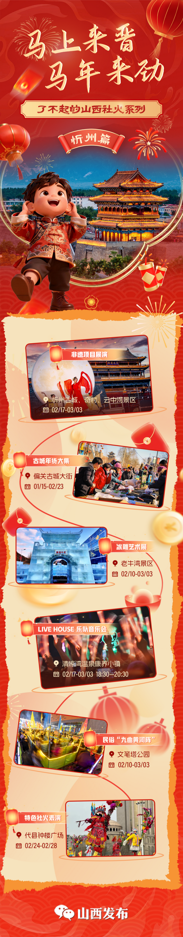 春节将至,“山西发布”隆重推出“马上来晋马年来劲”新春特别策划。近日陆续推出“了不起的山西社火”系列内容,介绍11地市春节期间的特色节庆活动。