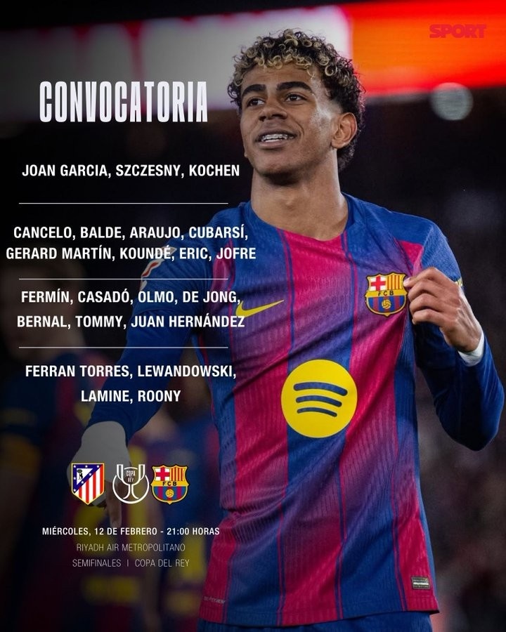 直播吧2月12日讯北京时间明天凌晨,巴萨将在国王杯半决赛首回合客场挑战马德里竞技,《每日体育报》透露了巴萨的出征名单。