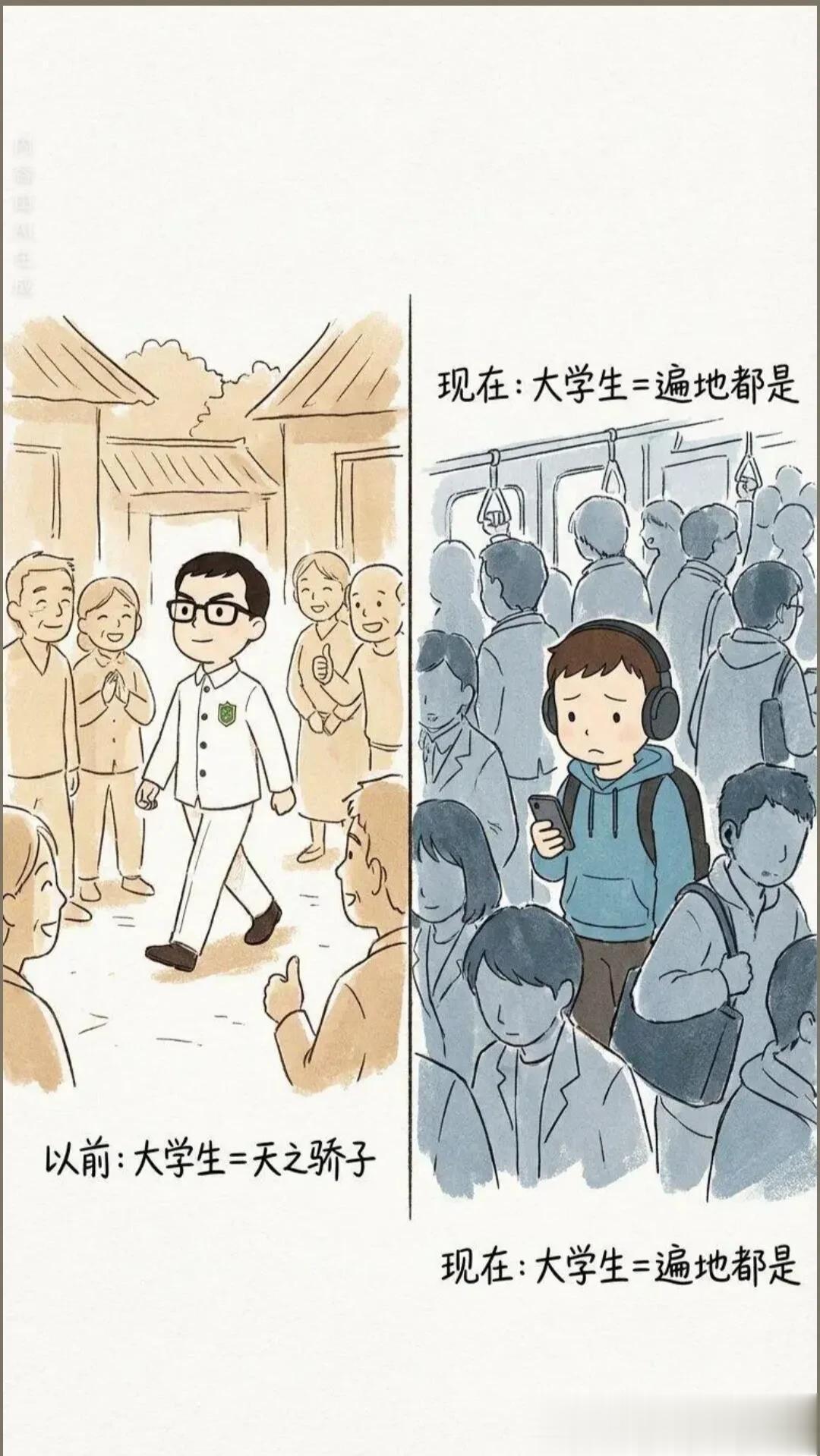 以前上大学,那是自带主角光环的“黄金时代”。背着洗得发白的帆布包,脚步迈得意气风发,连校门都透着庄重的仪式感。那时考上大学,是街坊邻里口中“光宗耀祖”的美谈,拎着录取通知书回家,连空气里都飘着骄傲的味道。课堂上抢坐第一排,笔记记得工工整整;卧谈会围在床头,聊理想、谈抱负,连食堂打饭阿姨都多给半勺菜,日子过得热气腾腾,满眼都是对未来的憧憬。