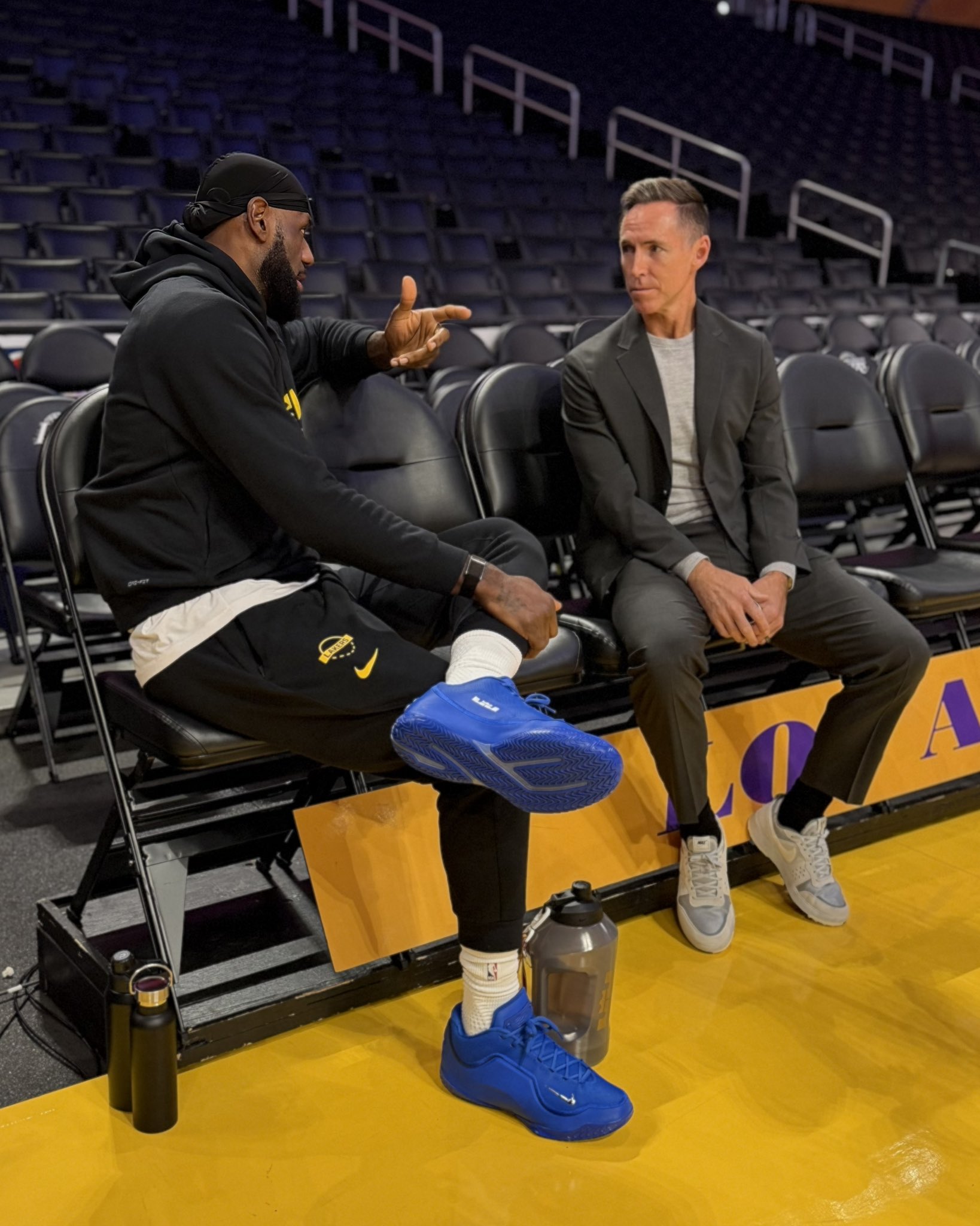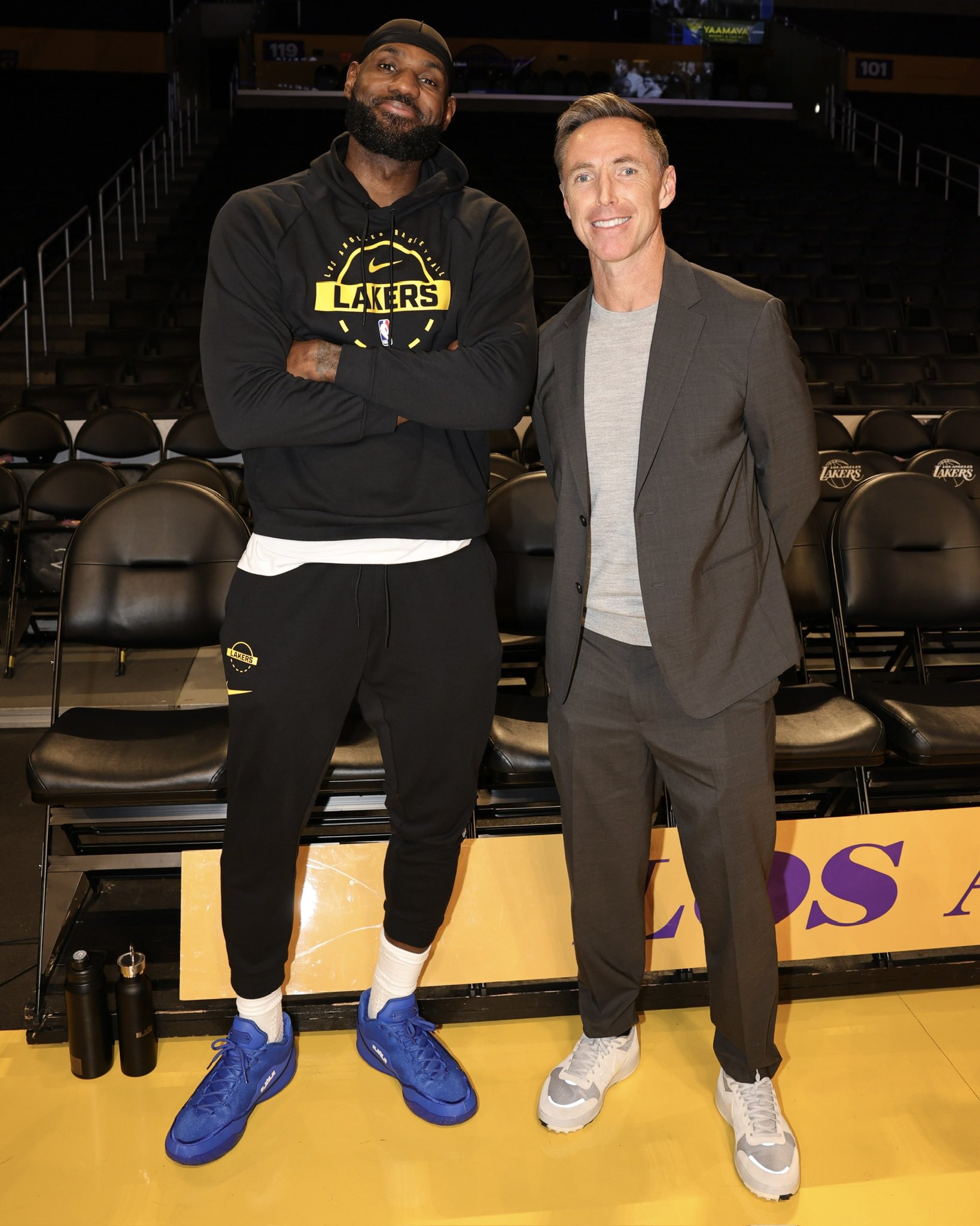 赛前,NBA官方晒出勒布朗-詹姆斯与史蒂夫-纳什的合影照片,并配文: