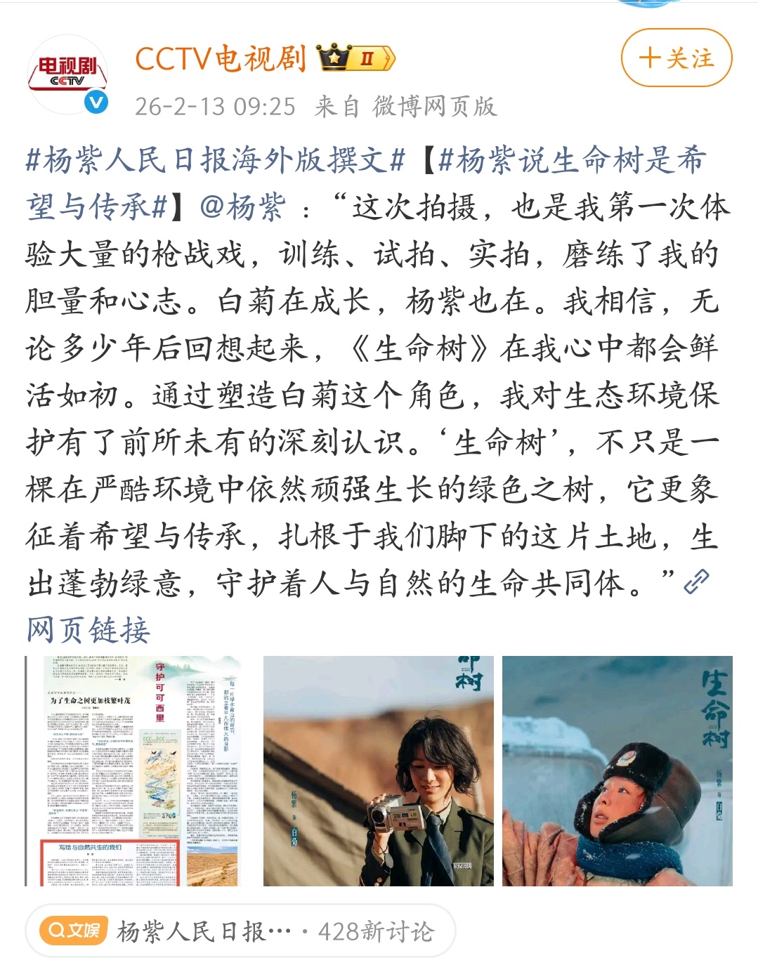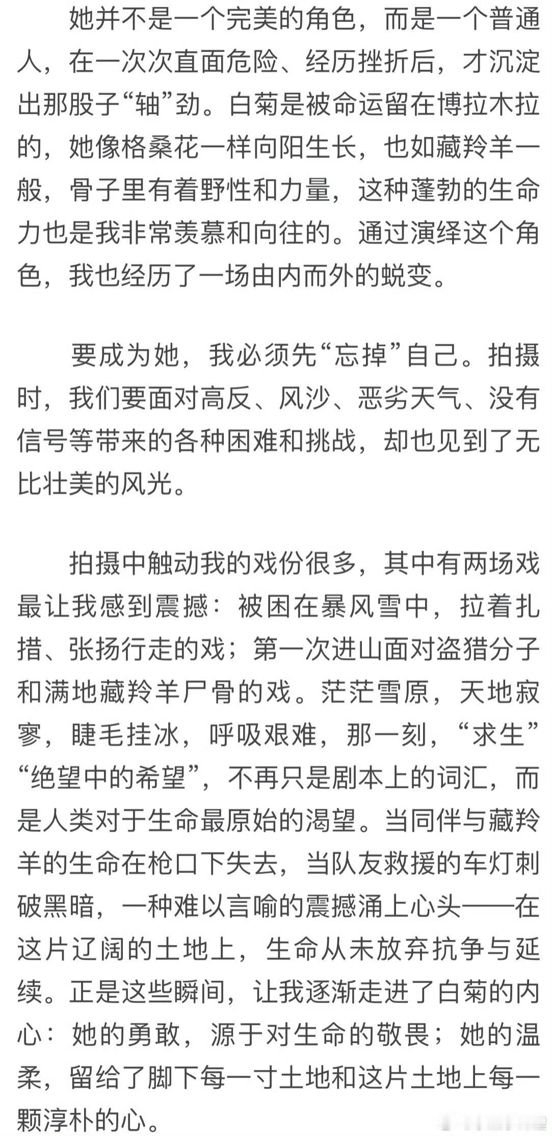 杨紫人民日报撰文杨紫人民日报撰文,谈及塑造白菊这个角色,对生态环境保护有了前所未有的深刻认识。它象征着希望与传承,扎根于我们脚下的这片土地,生出蓬勃绿意,守护着人与自然的生命共同体。杨紫对剧本的解读很深刻👍👍