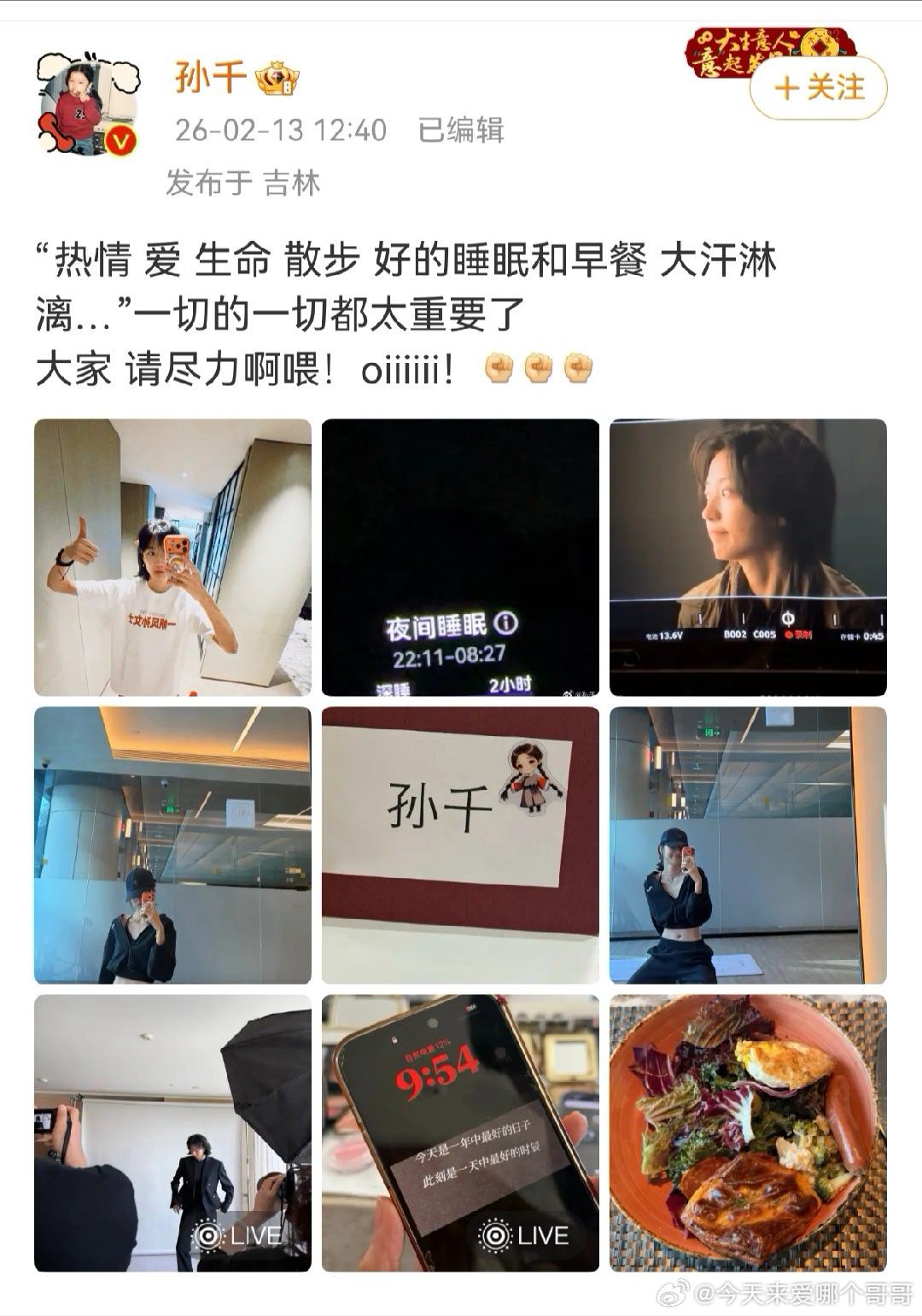 好喜欢看孙千的营业,是从吃饭睡觉运动到工作都事无巨细报备的妹宝浓浓的生活气息就像身边的朋友一样,做粉丝太幸福了吧