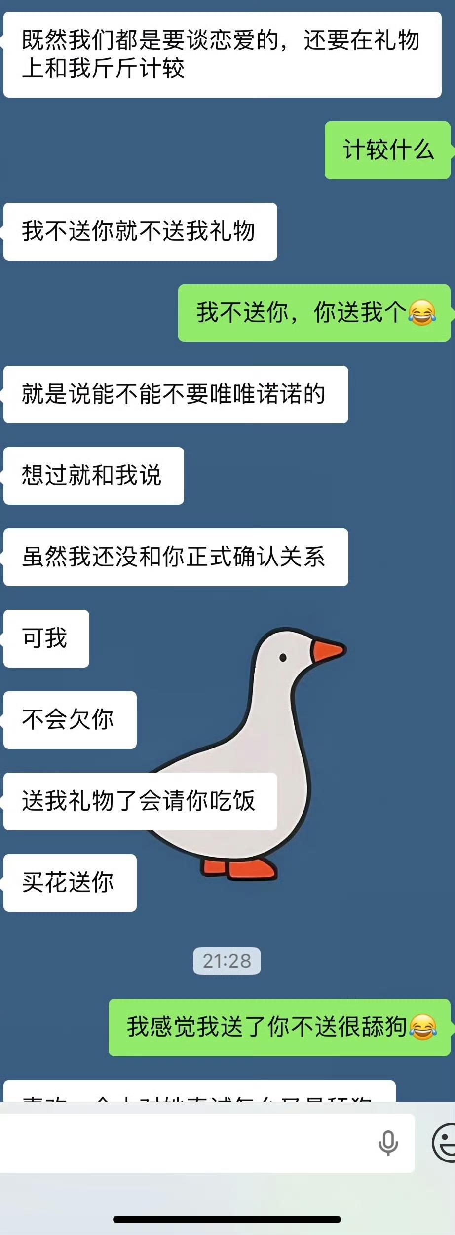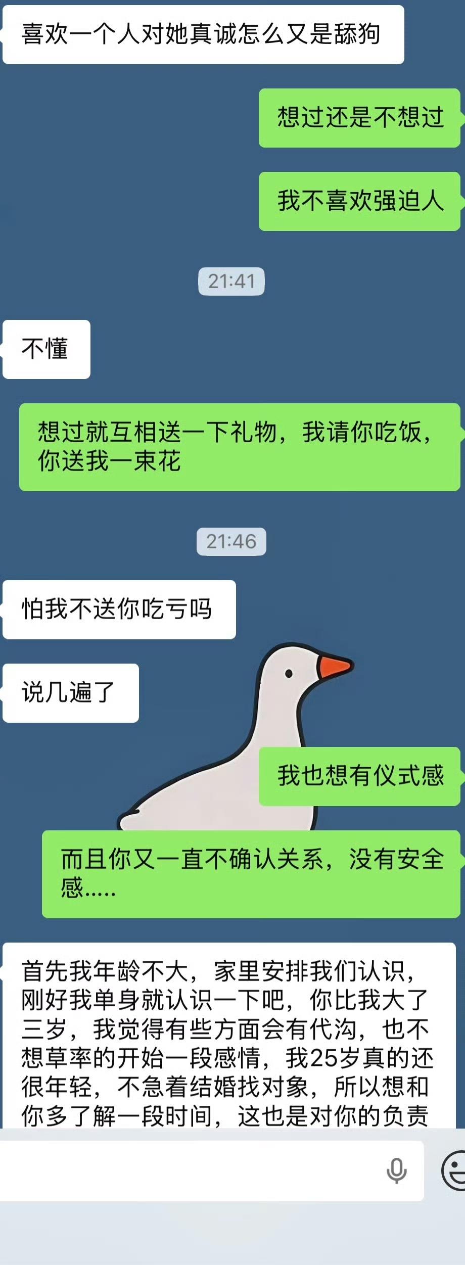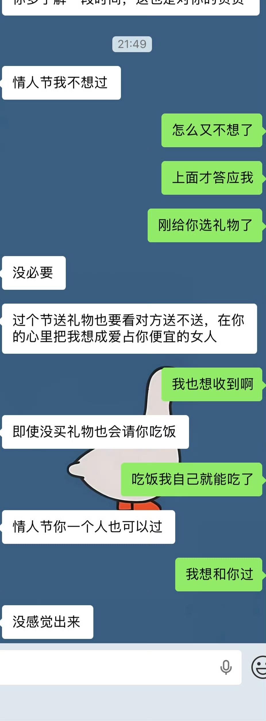 情人节即将到来,一男网友求助,希望网友们给他一个说法…. 事情是这样的,男方28岁,女方25岁,两人通过相亲结识,见过三次面,情人节快到了,男方准备了礼物但之后又给退了,因为他不知道对方想不想和他过情人节,会不会也给他送礼物,所以他就问女方是怎么想的,结果两人发生了矛盾…. 看了他们的聊天记录,男方情商好低,我个人建议是别相了,一个人挺好的,钱怎么花都是花在自己身上,不存在赔本买卖….