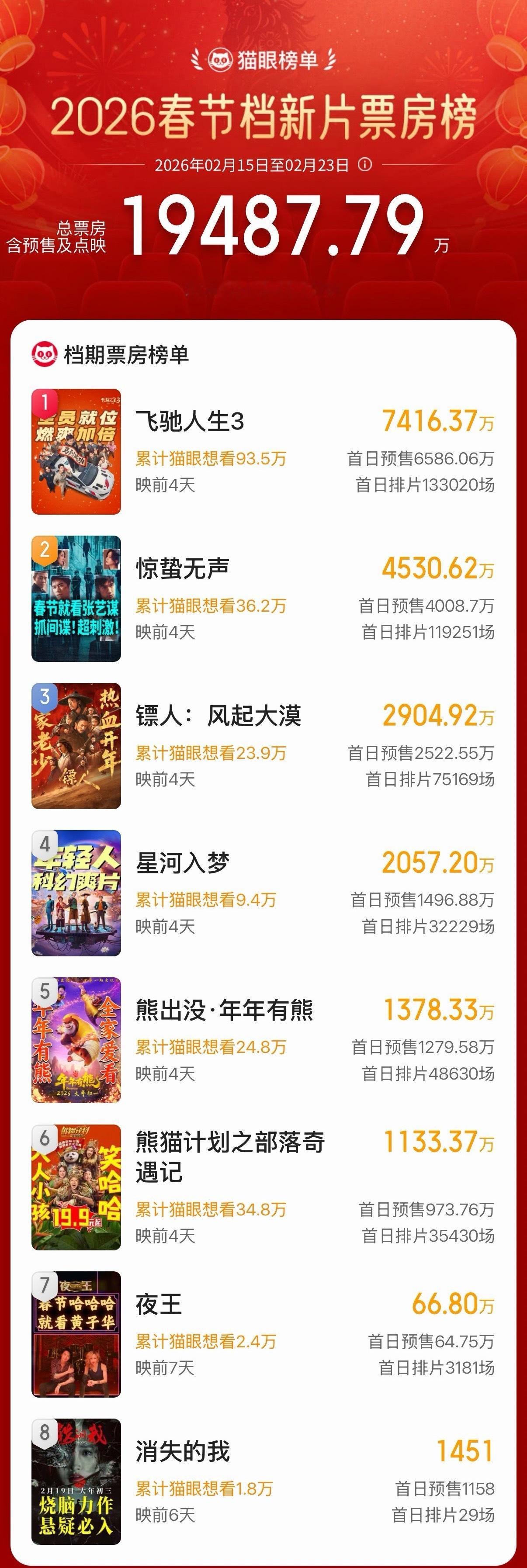 你和我说这是春节档预售?这样下去只有一个电影预售能破亿了。