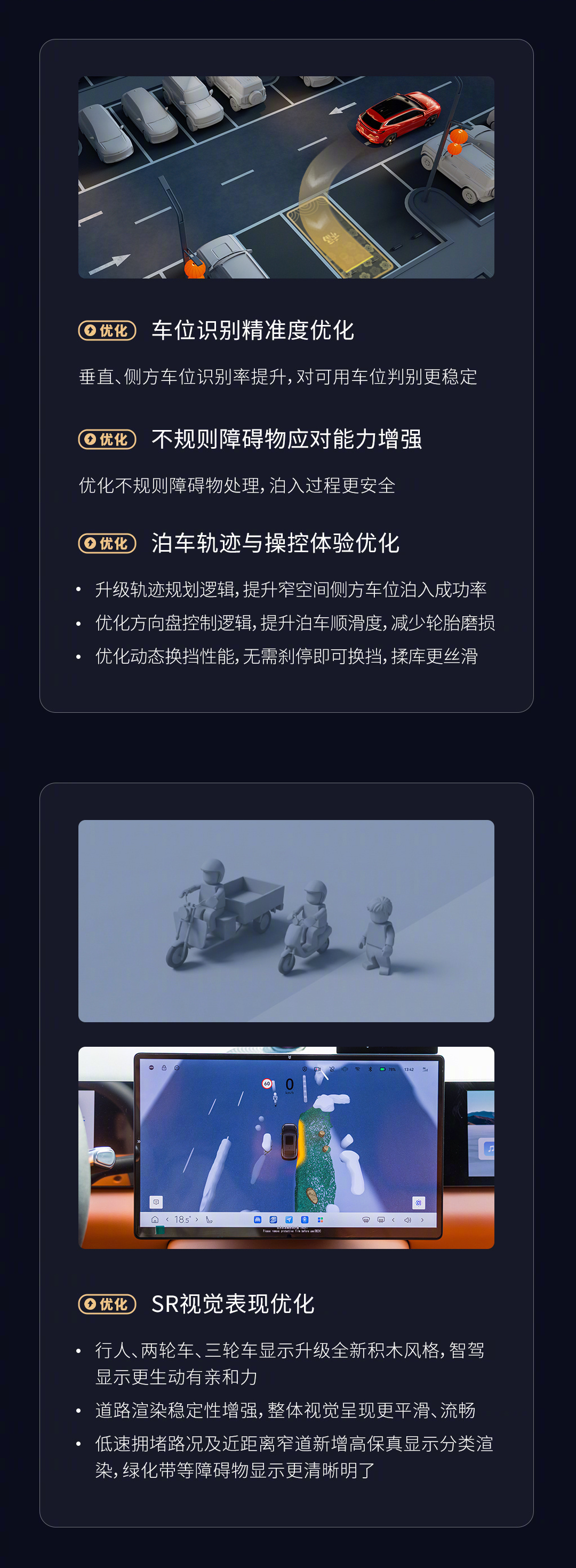 依托地平线软硬一体与量产端到端技术,HSD V1.5全面升级行车、泊车、HMI、SR视觉,高速大车避让、乡镇复杂路况应对更从容,窄位泊车更精准,防溜车更可靠。