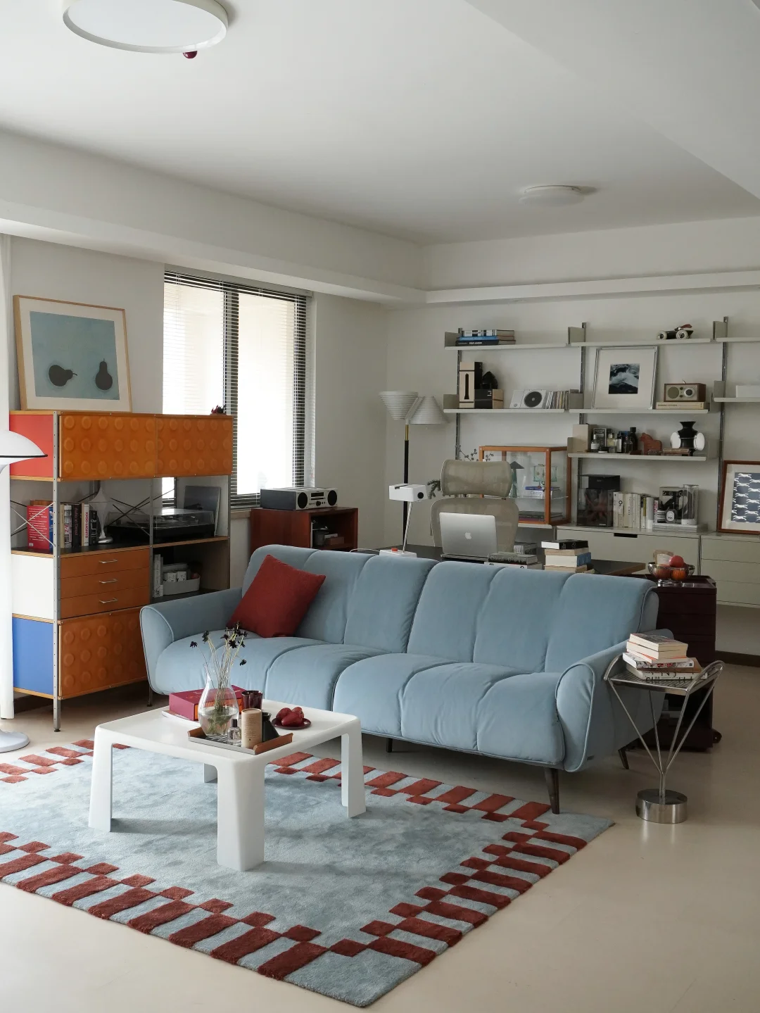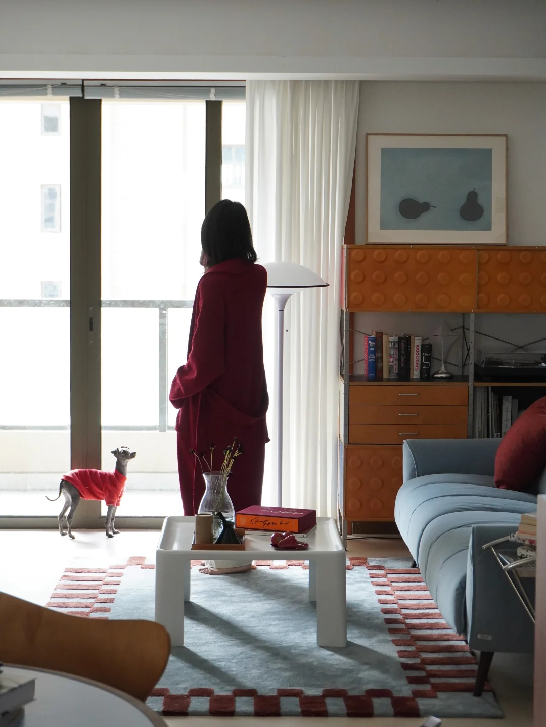 蓝 红搭配的色彩 跳跃在稳重的中古气息中