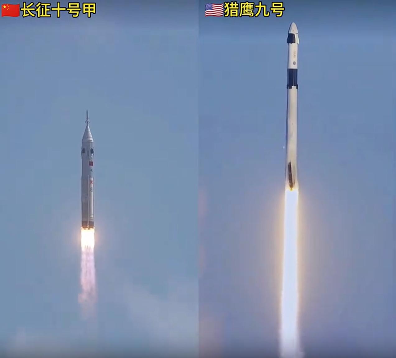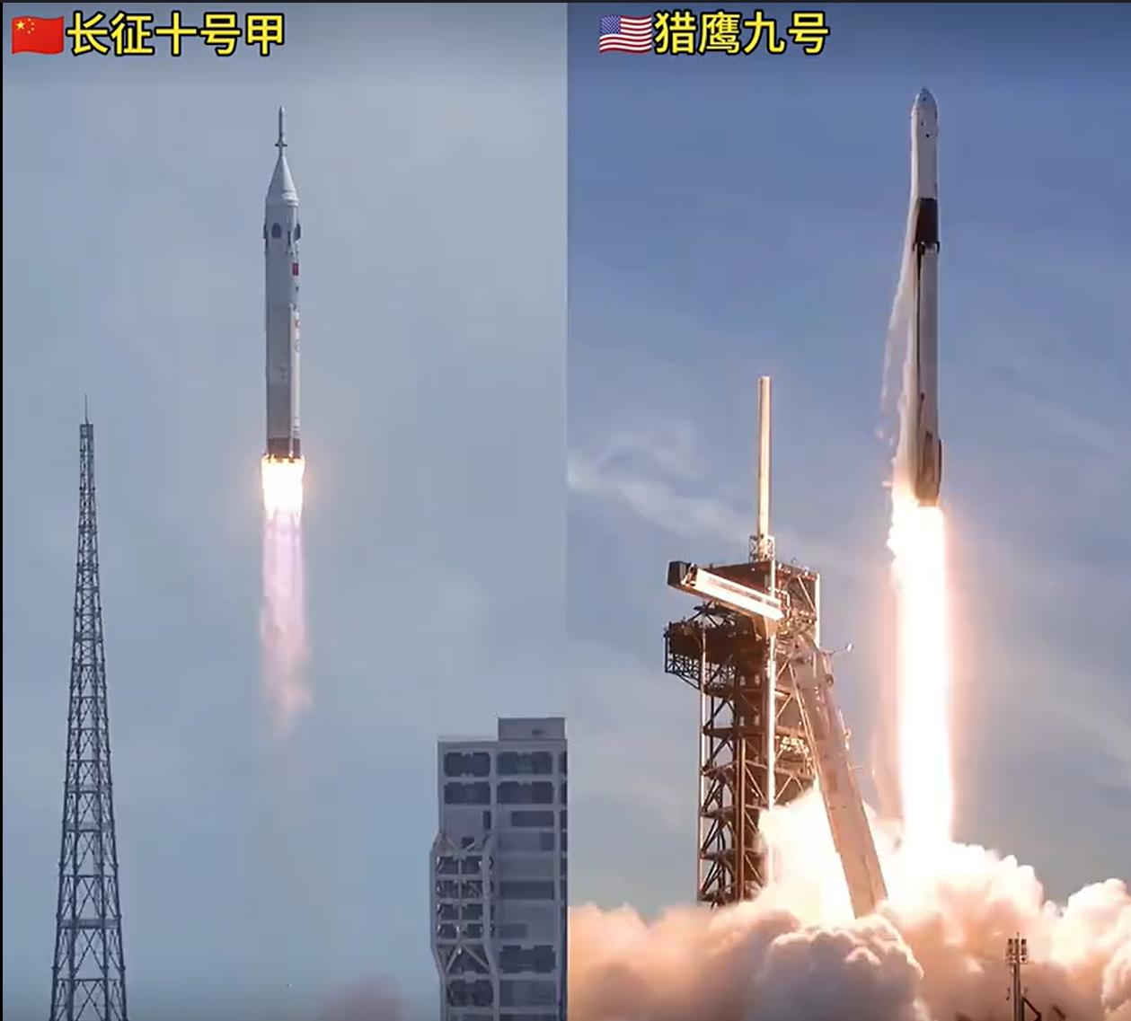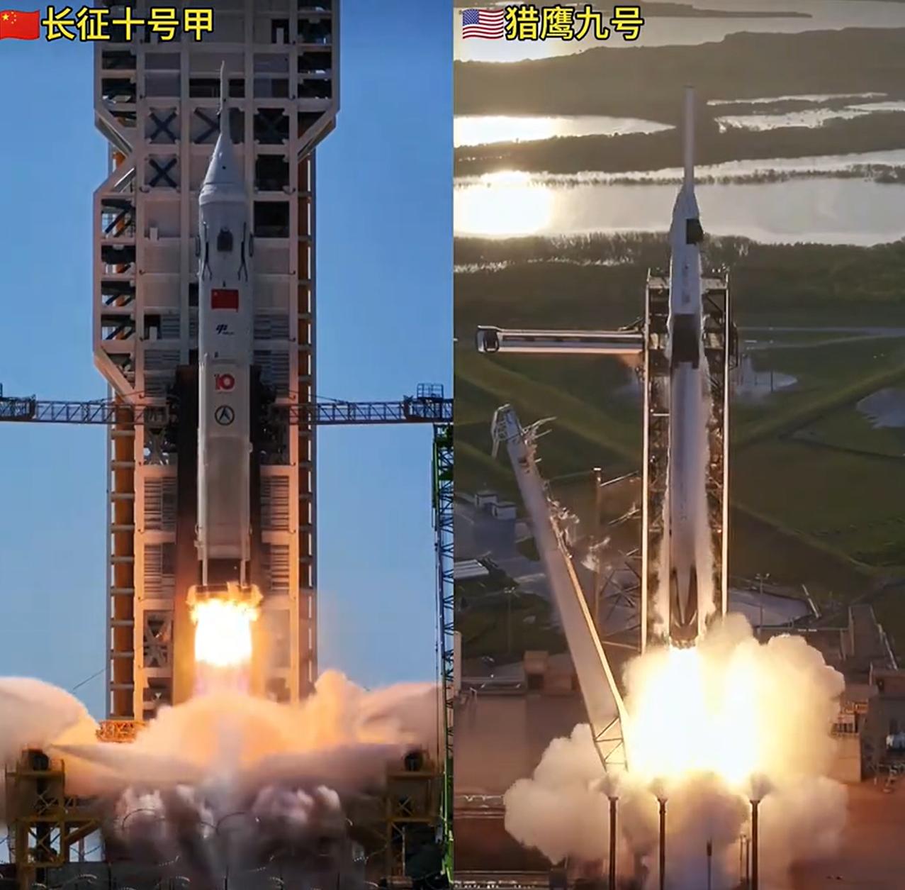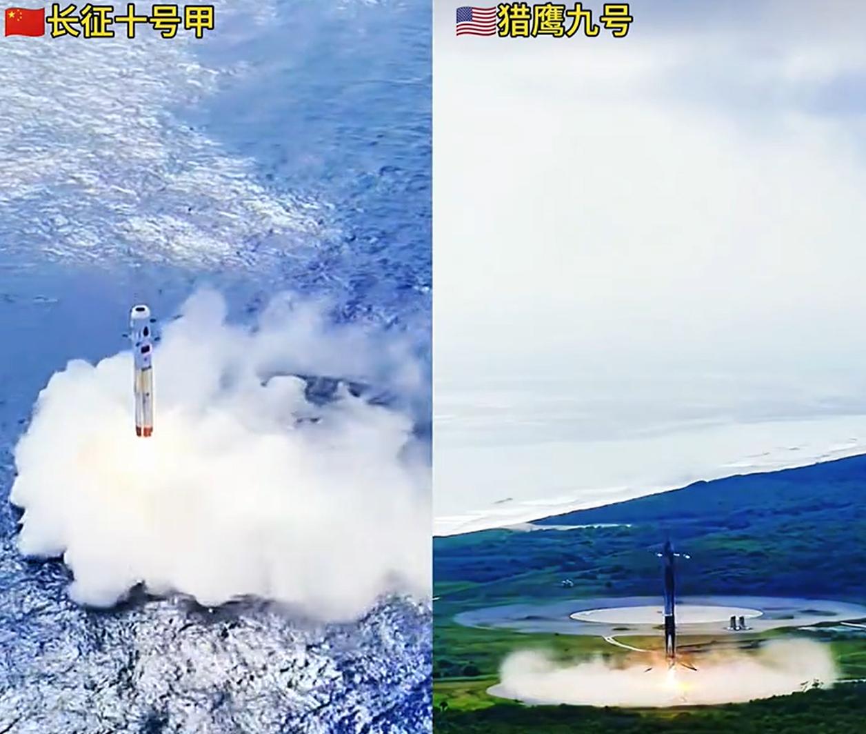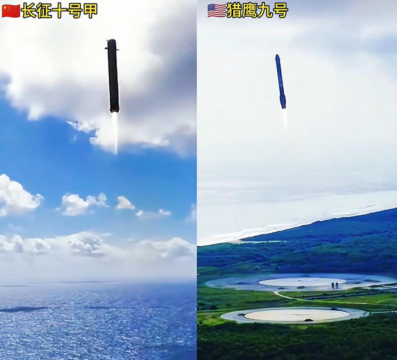 我们的长征十号甲,跟马斯克的猎鹰九号对比,很明显,我们的回收姿态,比后者要更强。 不要抬杠,仔细看,我们的姿态很早就保持了接近垂直,而猎鹰九号直到最后才调整成垂直状态。 更重要是,我们是第一次试验,而后者展示的是成功的那次。 另外,还有一个细节,猎鹰九号火箭的尾焰,明显要更长一些,这是因为什么呢? 有没有懂行的?