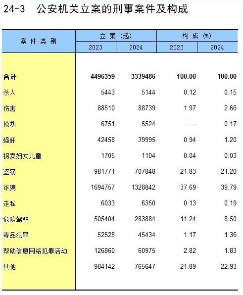 趋势明显是暴力犯罪继续减少,我国治安形势继续好转,电诈是让人民群众深受其害的主要犯罪类别,诈骗占所有刑案的39%。包括外国游客在内的女性,社会安全感普遍反应不错,成为中国社会安全的亮点之一。