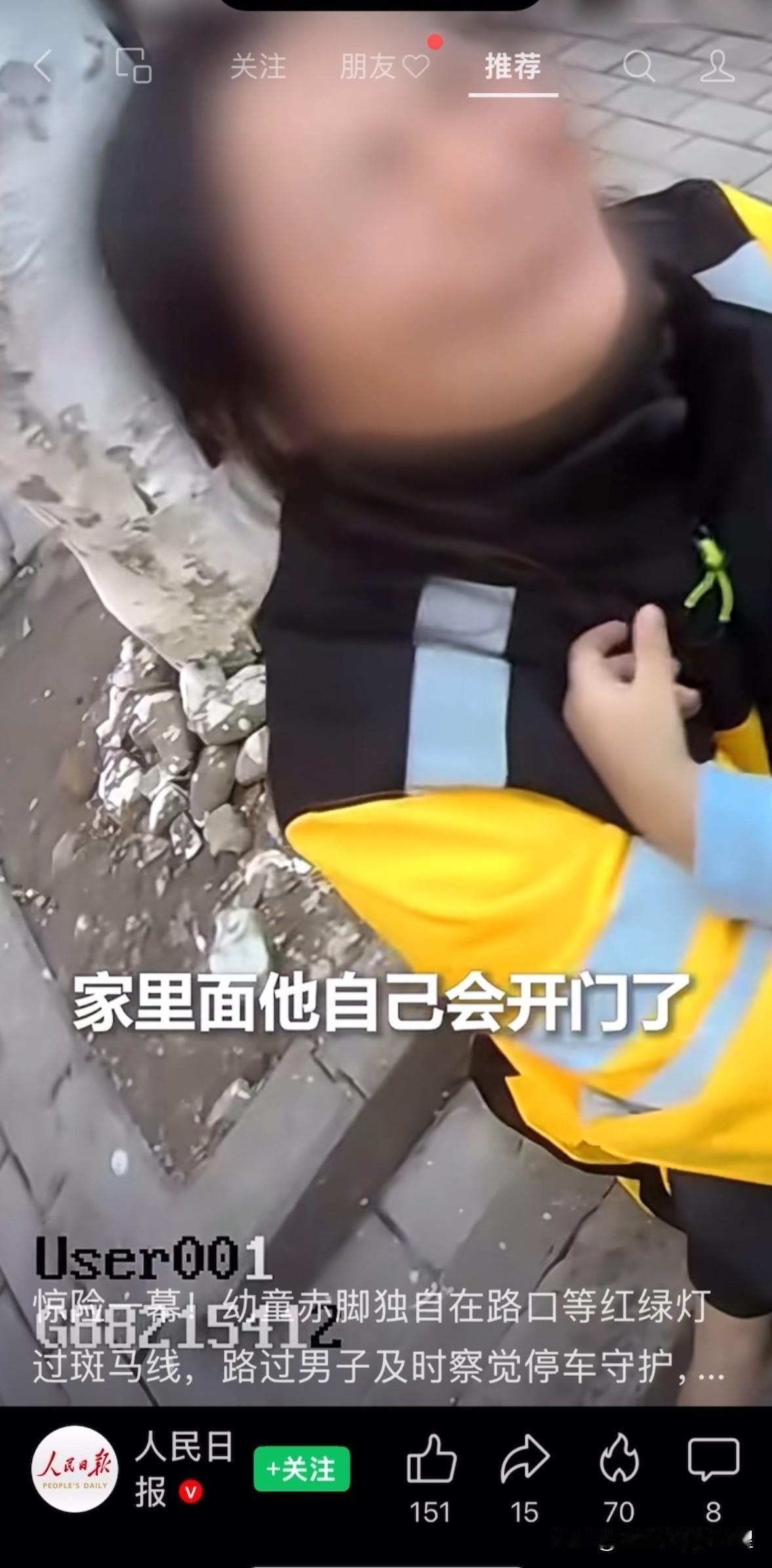 心酸!一2岁男孩衣着单薄,独自赤脚过斑马线,给妻子送饭的男子看到后,果断把孩子抱回店后给孩子穿衣穿鞋,报警后,孩子妈妈赶到抱着孩子,崩溃大哭:我送外卖回到家,看见门是开的,孩子不见了,我一直在找。 据媒体报道,一名男子开车去给看店的老婆送饭,在路过一处红绿灯时,他突然看到一个小小的身影,正独自一个人蹒跚地穿过马路,前后左右一个大人都没有。 男子当时心里想了一下,这么小的孩子,怎么没有大人陪伴呢,而且车来车往也太危险了!于是,他赶紧靠边把车停好,快步追了上去,追上去后一把将孩子抱了起来。 就在抱起孩子的那一刻,男子真的太难受了——孩子脚上光溜溜的,一只鞋都没有,身上就穿了一件单薄的毛衣和裤子,连件外套都没穿,男子摸着孩子的手脚,手脚冰凉,脚由于没穿鞋,已被磨的通红,小脸也冰凉冰凉的。 这么冷的天,穿着厚实都冷得让人发抖,何况这么小的孩子穿的这么单薄,也不知这孩子在路上走了多久。 男子想这个孩子肯定是不知什么原因跑出来了,家长一定很着急吧,自己家的店就在附近,先把孩子带回店里吧。 把孩子抱回自己家的店里后,男子的老婆看到了孩子,再听到老公所说的,也是心疼极了,马上孩子倒了点热水暖暖身子,又赶紧拿来自己的衣服,给孩子裹得严严实实,生怕冻感冒了,还怕孩子饿了,拿来面包给孩子吃。 他耐心地问孩子家在哪里、爸爸妈妈叫什么,可孩子才2岁,太小了,什么都说不清楚,既说不出家庭住址,也记不住家长的电话号码,只抽抽噎噎地说他是出来找妈妈的。 没有办法,男子只能选择报警,希望能帮孩子找到家人。 警察赶到后,也试着跟孩子沟通,可孩子还是一问三不知。毕竟孩子才2岁,能记住的信息不多。 就在大家都着急的时候,好消息来了——孩子的妈妈也已经报警了,警方一核对,正是这个走失的孩子! 没过多久,孩子妈妈火急火燎地赶了过来,一看到安然无恙的儿子,当场冲上去抱住孩子,崩溃大哭,情绪久久平复不下来。 警察也忍不住叮嘱她:“以后一定要把孩子看好啊,这么小一个人跑出去,太危险了!” 孩子妈妈一边哭,一边说出了实情。因为家里经济条件不好,她只能选择比较灵活的工作,一边送外卖一边带孩子,平时孩子都会乖乖待在家里。 可这几天外卖比较忙,她就多接了几单,回家也比平时晚一些。这天她送完手中的订单后已经比平时晚了将近一个小时。 等她回到家里,发现家门是敞开着,孩子不见了。原来孩子饿了,没有等到妈妈回来,就自己开门出去找妈妈去了。 孩子妈妈在家门口找了一圈,都没找到,吓得魂都快没了,这才赶紧报警,没想到孩子已经被好心人救下了。 此事被网友发到网上,被人民日报转载,网友看过后议论纷纷。 有网友说,我是两个宝宝的妈,也是外卖员,我只能在晚卜接单,白天在家看孩子,晚上老公下班后,他在家带孩子,每天都忙到晚上十一点多。 有的网友说,当她放声大哭的时候,心中有多少无奈啊!这个外卖妈妈的眼泪让我心酸,愿她和她的宝贝越来越好! 有的网友还说,万幸的是,遇到了这位细心又善良的司机,不然后果真的不堪设想。也希望所有带娃的家长,无论多忙,都千万不要让孩子离开自己的视线,平安,比什么都重要。 取材网络,侵删,个人观点,仅供参考。