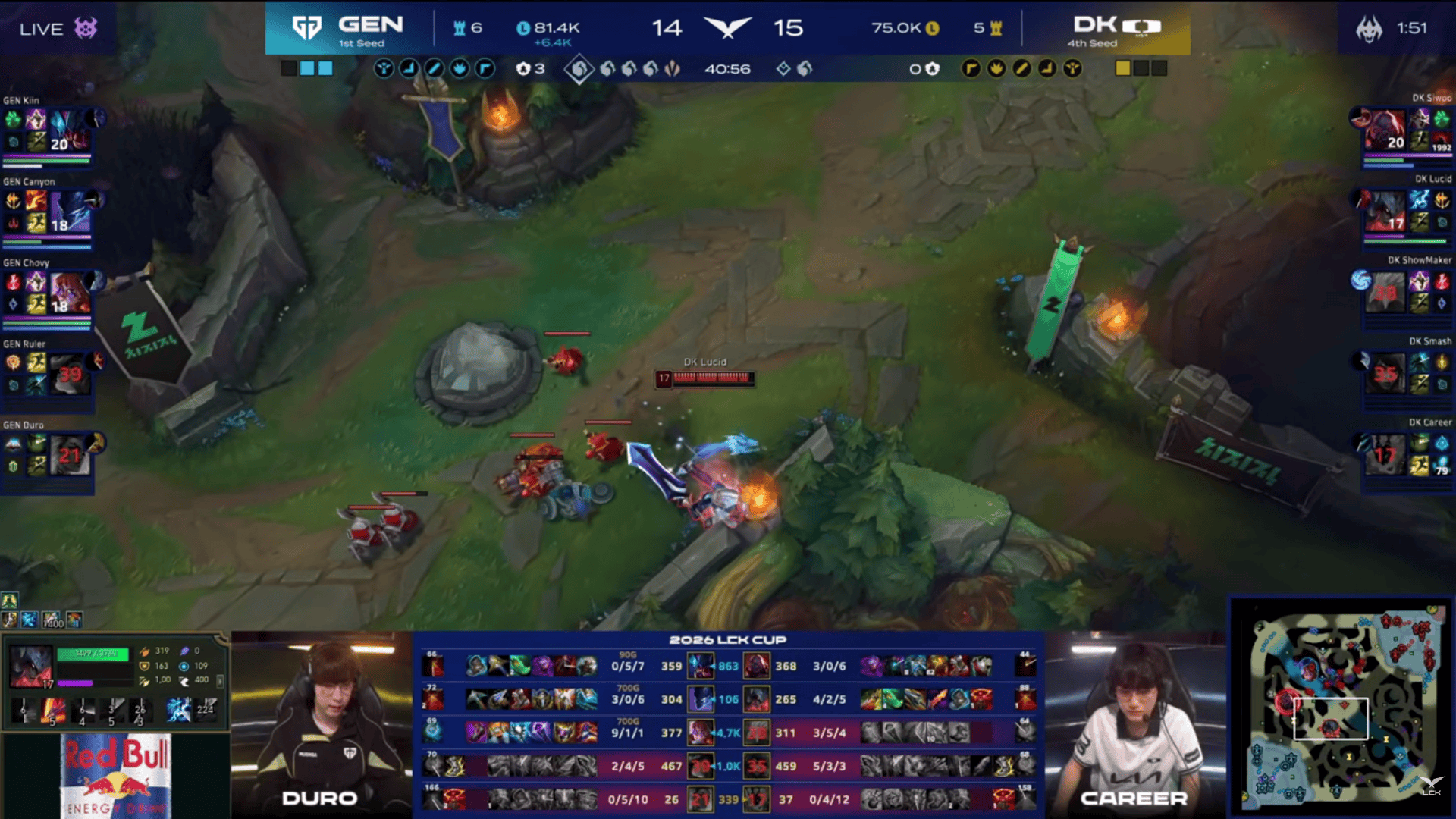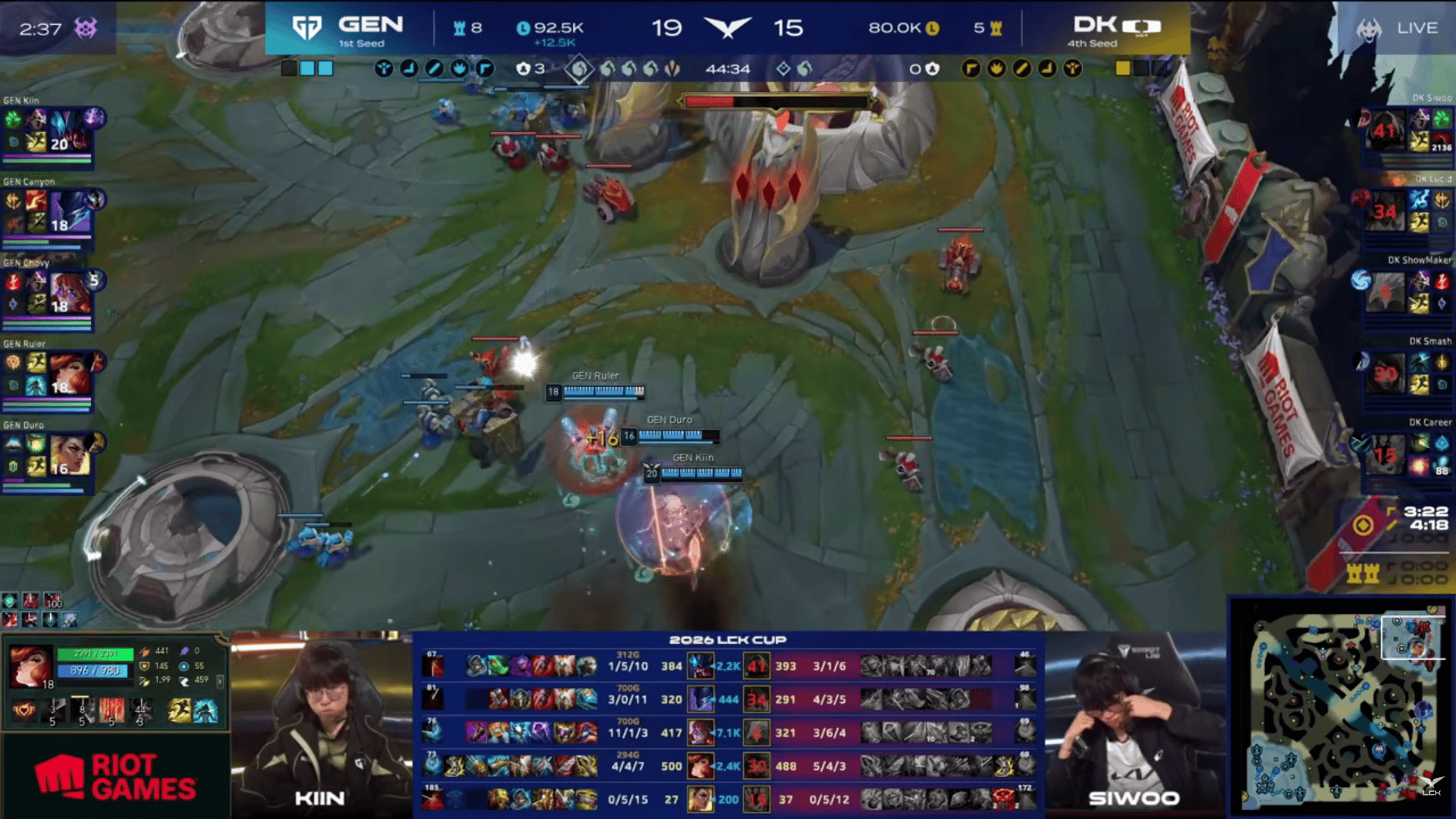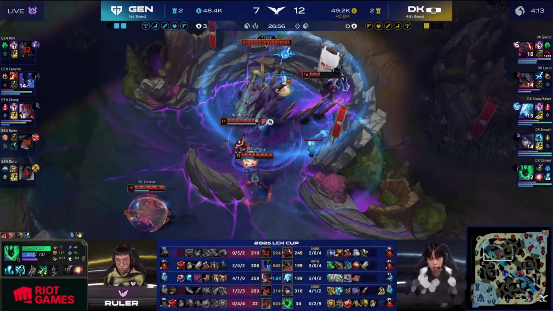 虎扑02月14日讯[GAME4]GEN蓝色方、DK红色方