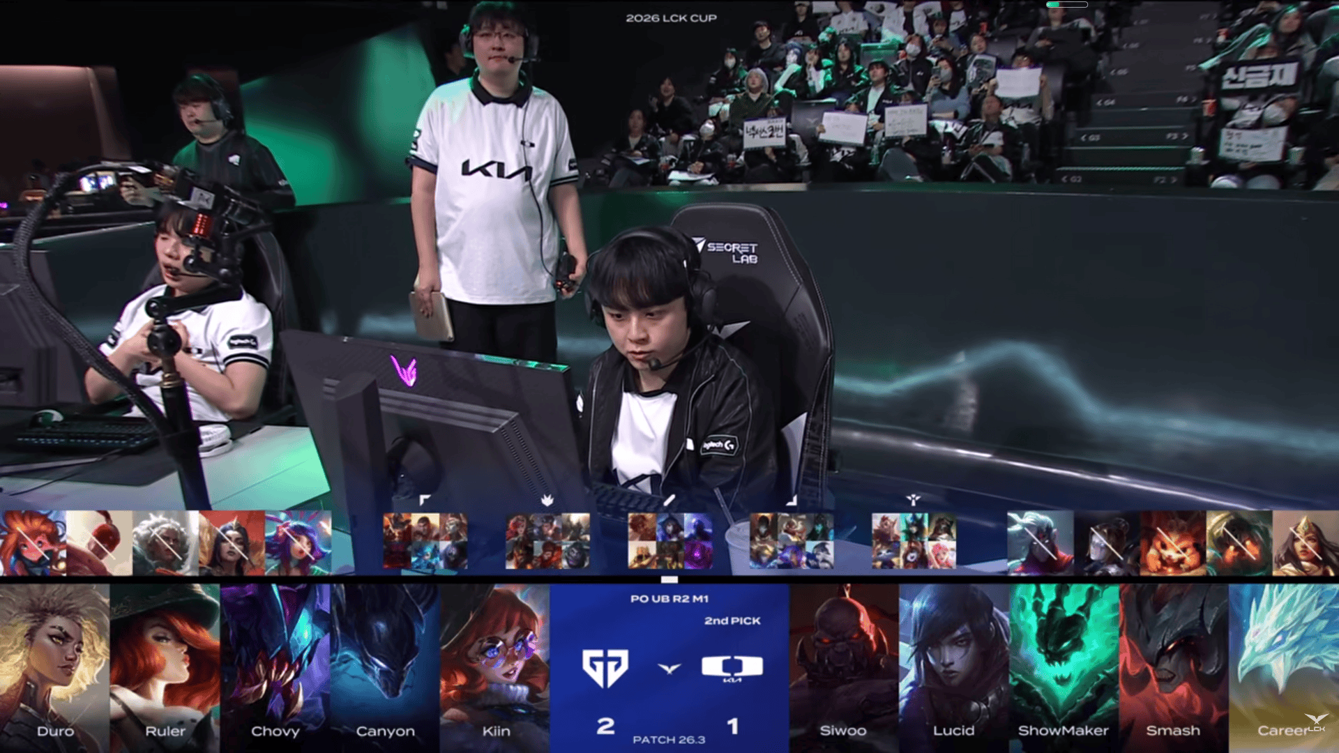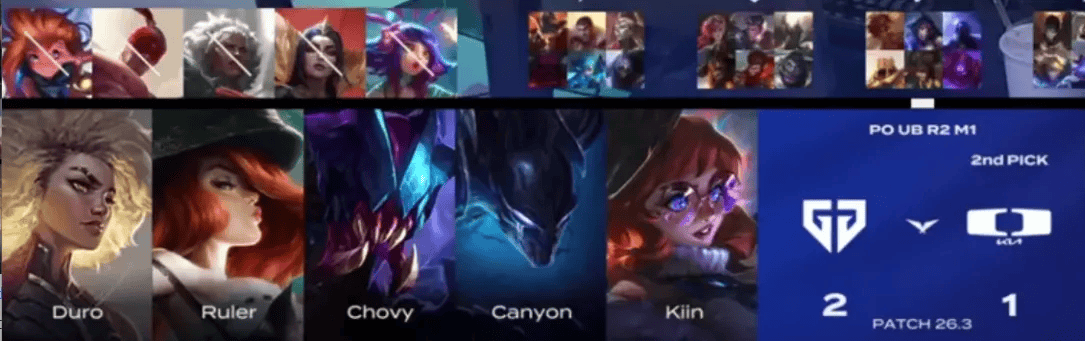 GEN选用:Kiin雷克塞、Canyon梦魇、Chovy阿萝拉、Ruler女枪、Duro芮尔