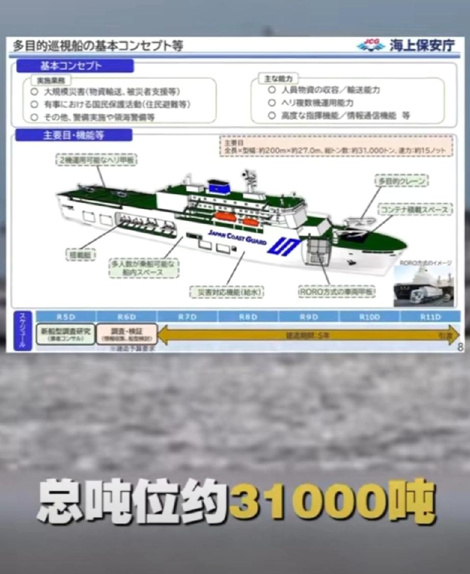 别再看出云号!日本造出全球最大海警船,3.1万吨巨舰专为台海而来 日本海上保安厅再砸140亿日元,打造全球最大海警船! 总预算680亿日元,这艘31000吨级巨舰,吨位直接超过出云级准航母。 名义上是巡逻救灾,实则配备双机库、滚装甲板,可搭载直升机与大量人员装备,本质就是披着海保外衣的准军用海上基地。 日本以民事之名行军事化之实,一步步突破底线,地区安全风险持续升高,必须高度警惕! 军事 国际