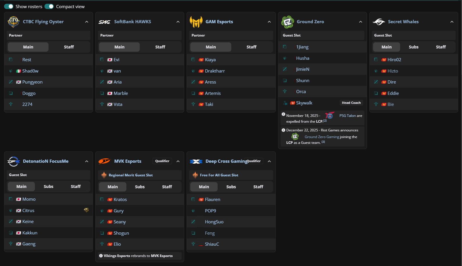 虎扑02月15日讯LCP第一赛段胜者组半决赛本周末结束,在昨日结束的比赛中前FPX主教练WarHorse执教的越南TSW战队让一追三击败日本SHG挺进胜者组决赛,而在今晚结束的另一场胜者组半决赛的比赛中,DCG以3-1击败GZ挺进胜者组决赛。