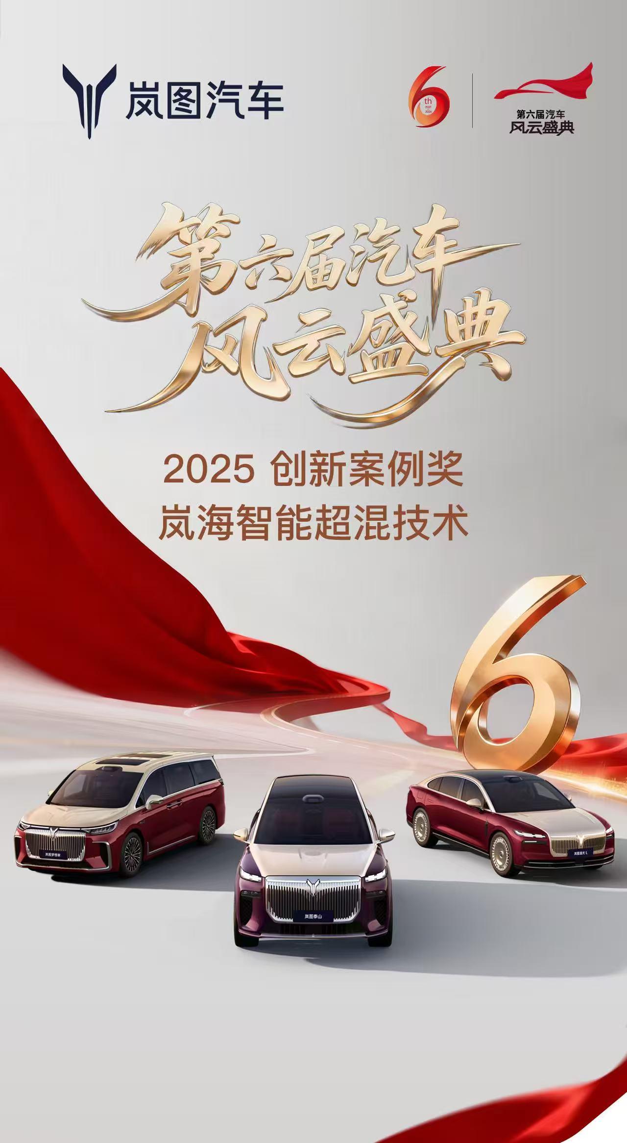 央视第六届汽车风云盛典结果出炉 岚图直接拿下“风云2025年度创新案例”与“2025风云车”,是本届极少数可以做到技术和产品两项都拿奖的 岚图这次是泰山车型拿到风云车,而2025年的岚海智能超混技术,也是让岚图车型大步向前,800V+65度大电池,补能和续航都很棒 而且之前岚图已经获得“世界十佳混合动力车型”“世界十佳混合动力系统”双项国际荣誉 所以对岚图来说,这是技术上的领先 年前拿到这样一个好荣誉,不错【来自懂车帝车友圈】