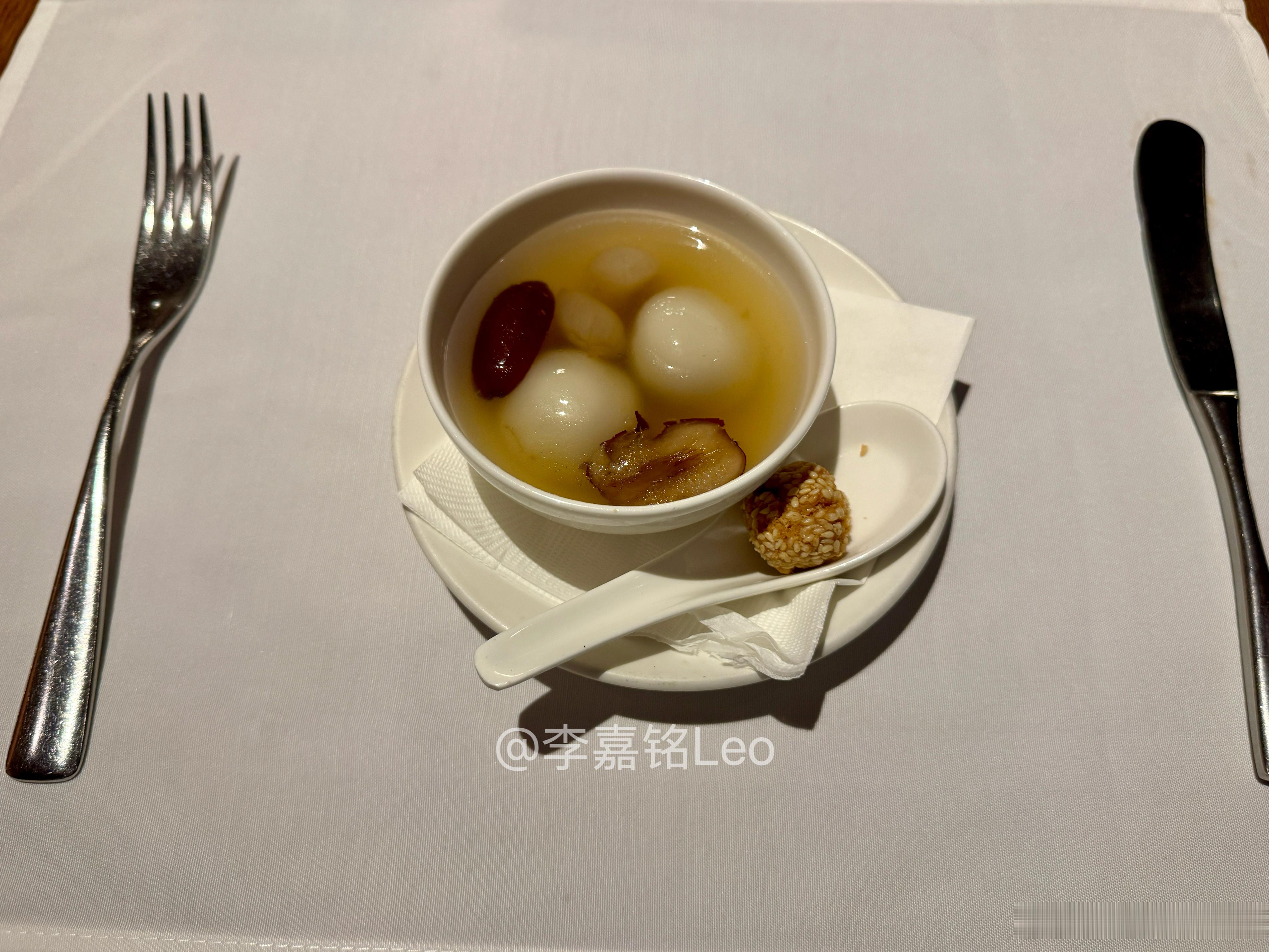 和去年年末褒贬不一的圣诞节菜单相比,这次算是用了点心思:汤:汤有汤味。蠔皇鲍鱼:象征包罗万象、年年有余。葱油鸡:满足广东人过年过节一定要食鸡!桂圆红枣芝麻汤圆:这个糖水味道正,寓意也好。