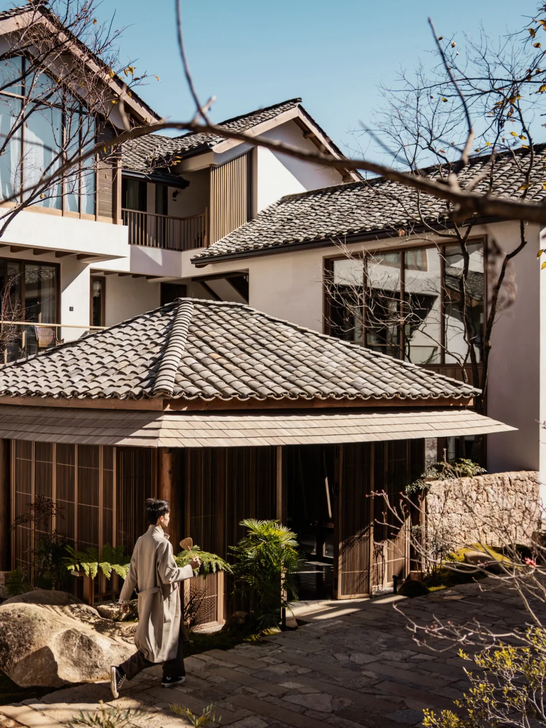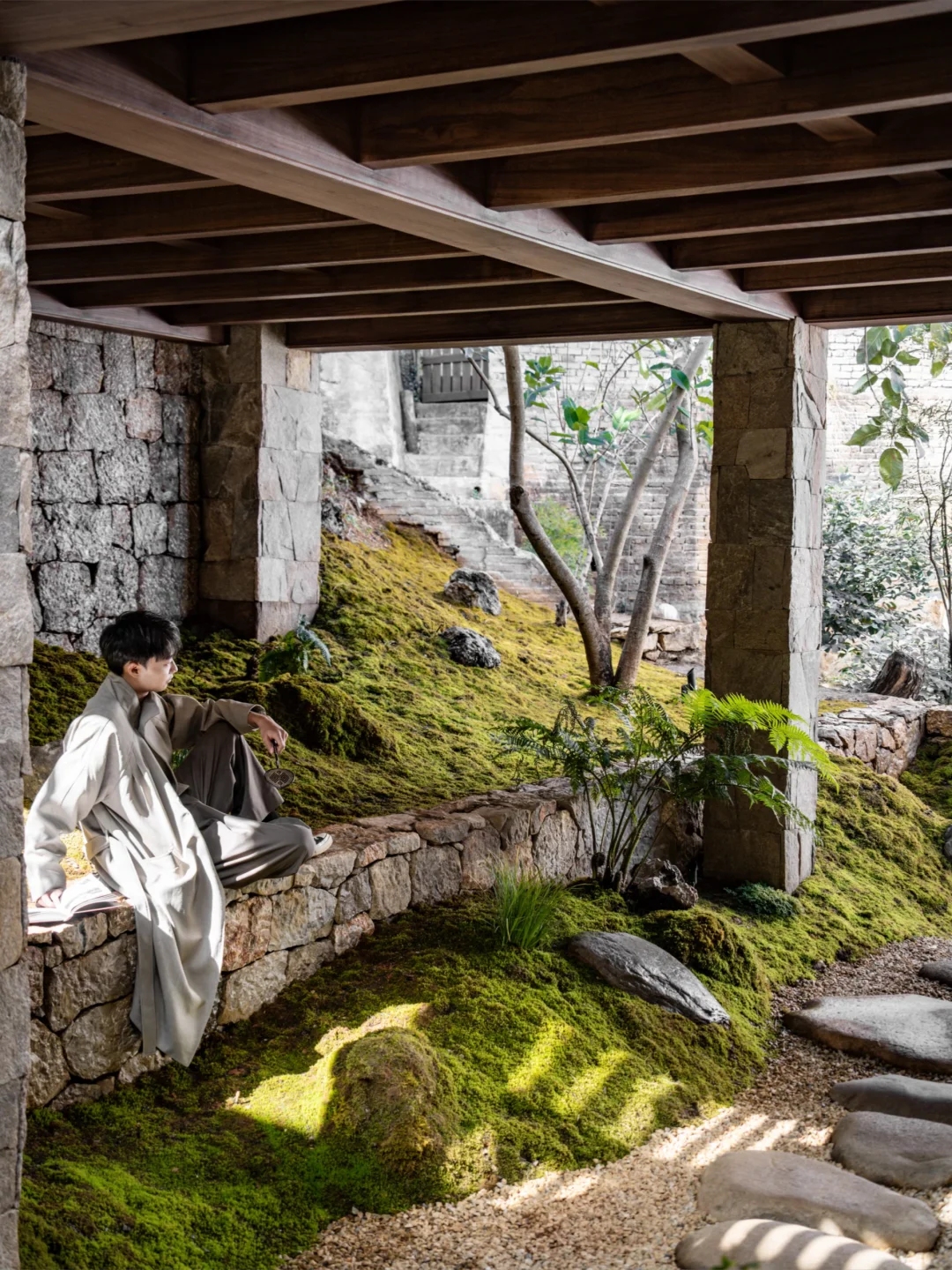 午后穿过长满青苔的石板路