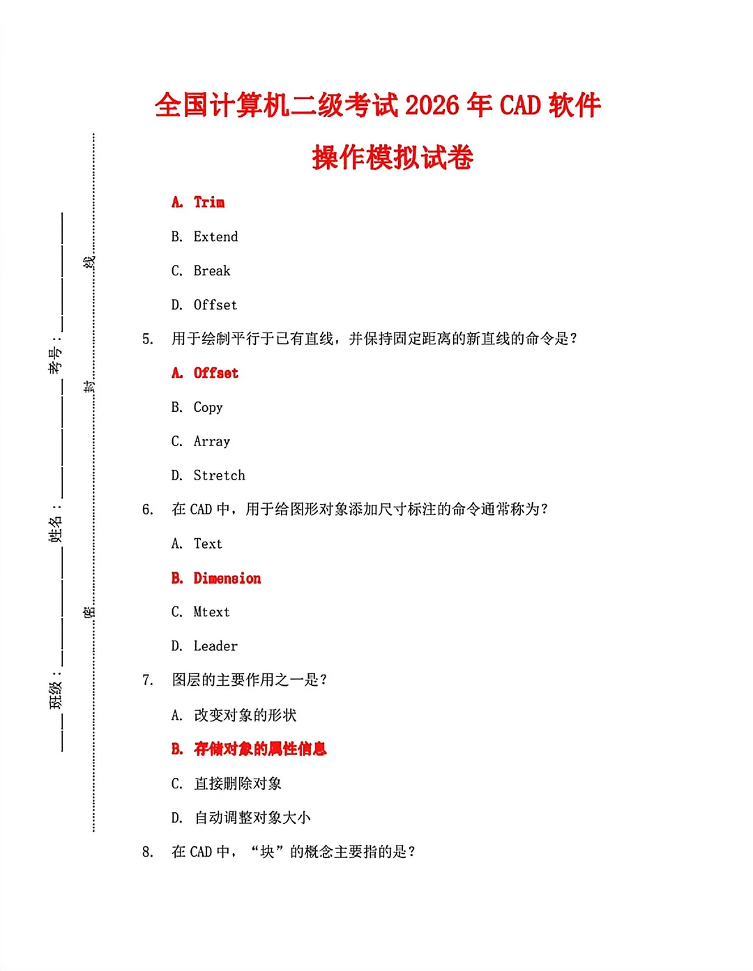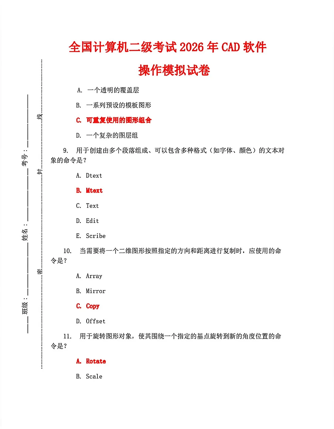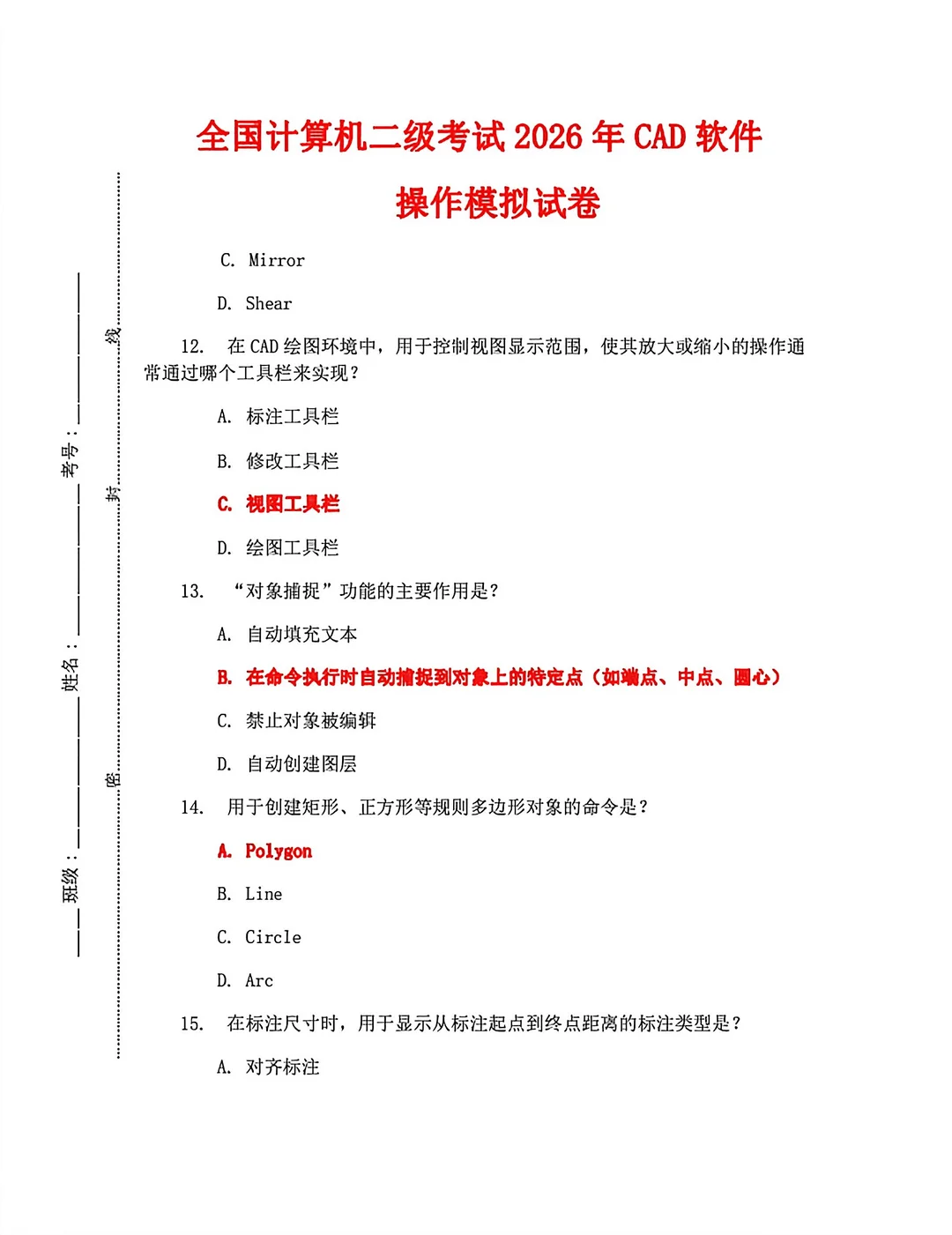 3月计算机二级CAD模拟试卷🔥