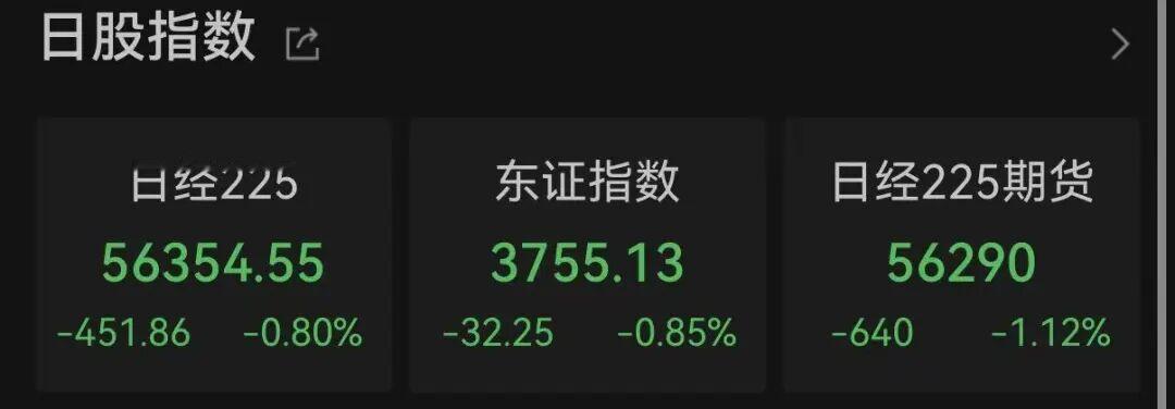日股方面,今日日本股市集体下跌,截至发稿,日经225指数跌超0.7%,东证指数跌逾0.8%。