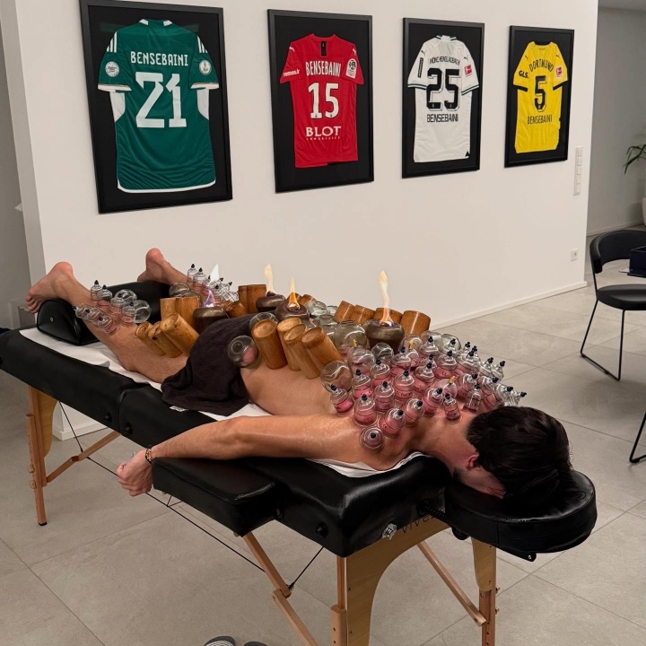 吉拉西的队友本塞拜尼也在这里接受了拔罐治疗。