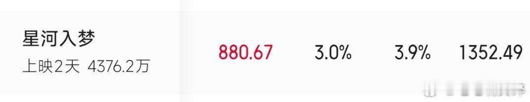 星河入梦排片占比急剧下降当时就知道这部电影不会播的很好,但想着有个流量生王鹤棣最起码能破亿现在破亿都难,本来王鹤棣和宋茜在我看来就没有啥号召力,还放在春节档,都播不过熊出没 星河入梦郭帆说星河入梦很好看郭帆说星河入梦是科幻的另一种探索