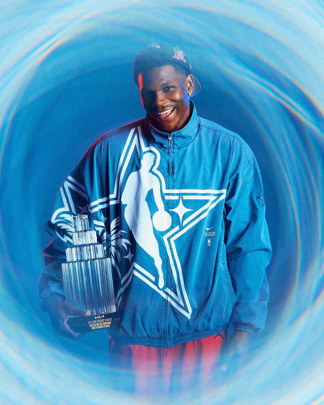 虎扑02月18日讯NBA官方更新X,晒出一张森林狼球员安东尼-爱德华兹的得奖照与球迷分享。