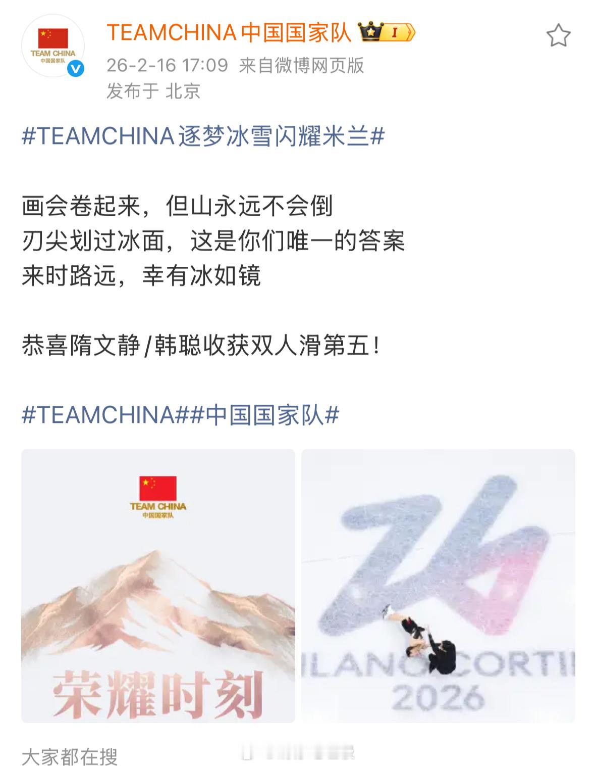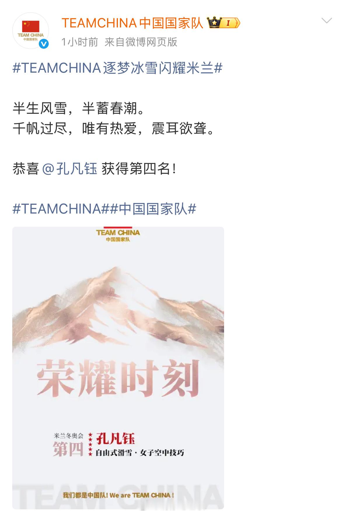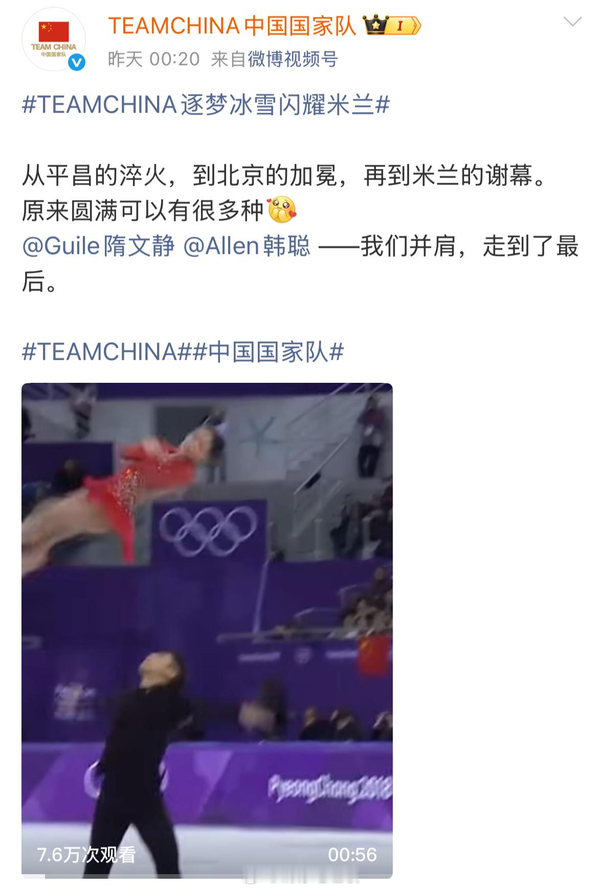 这个中国国家队官博真的太会写文案了写徐梦桃:“18岁那年,你不知道这条路有多长…桃花,又开了”写范可新:“在冰面写满年轮的人,比任何人更懂得残酷的凛冽和热爱的体温”写谷爱凌:“重力向下,而你向上。世界标注象限,你定义自己的中央”写隋韩:“画会卷起来,但山不会倒…来时路远,幸有冰如镜…原来圆满可以有很多种”