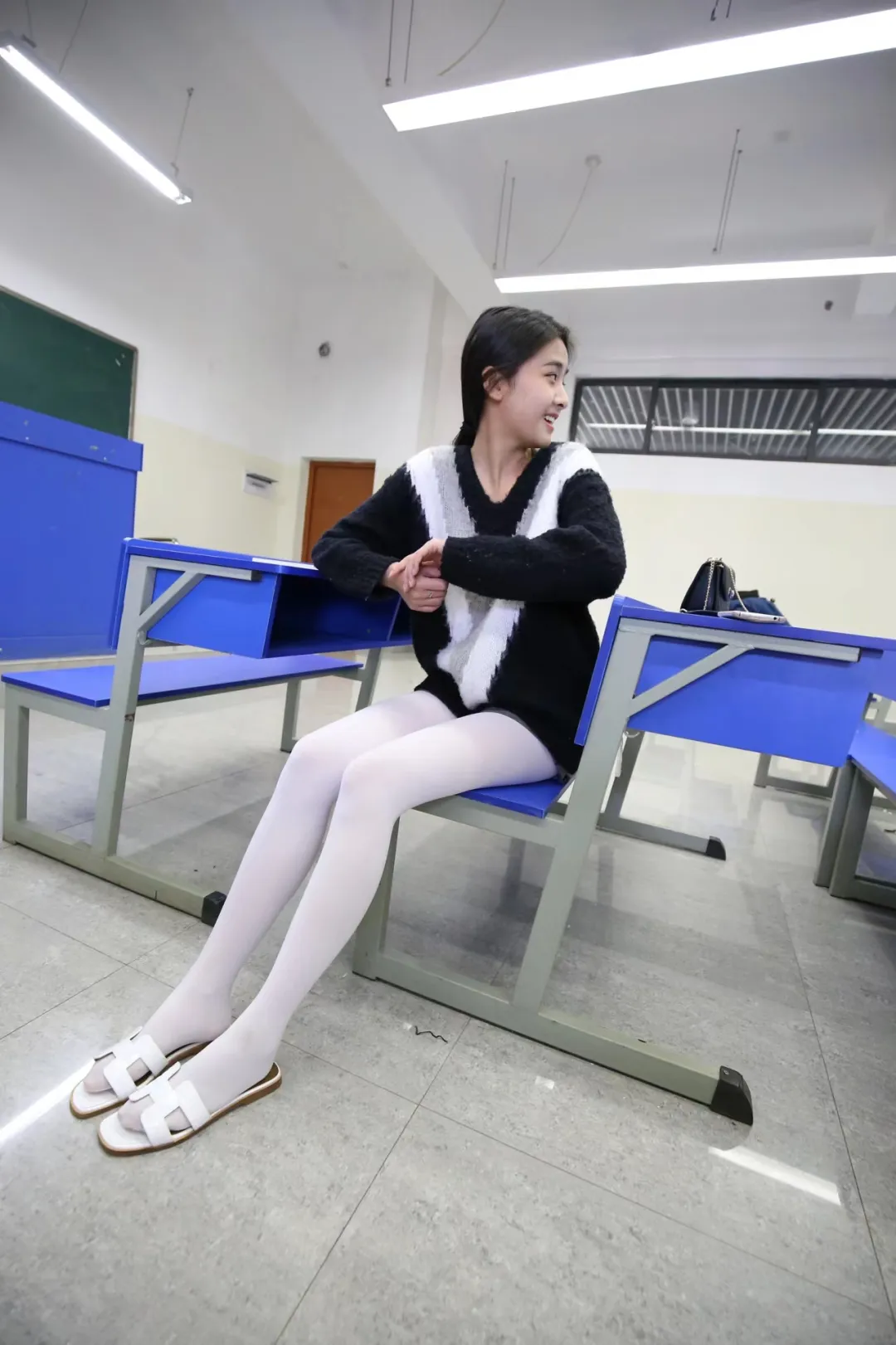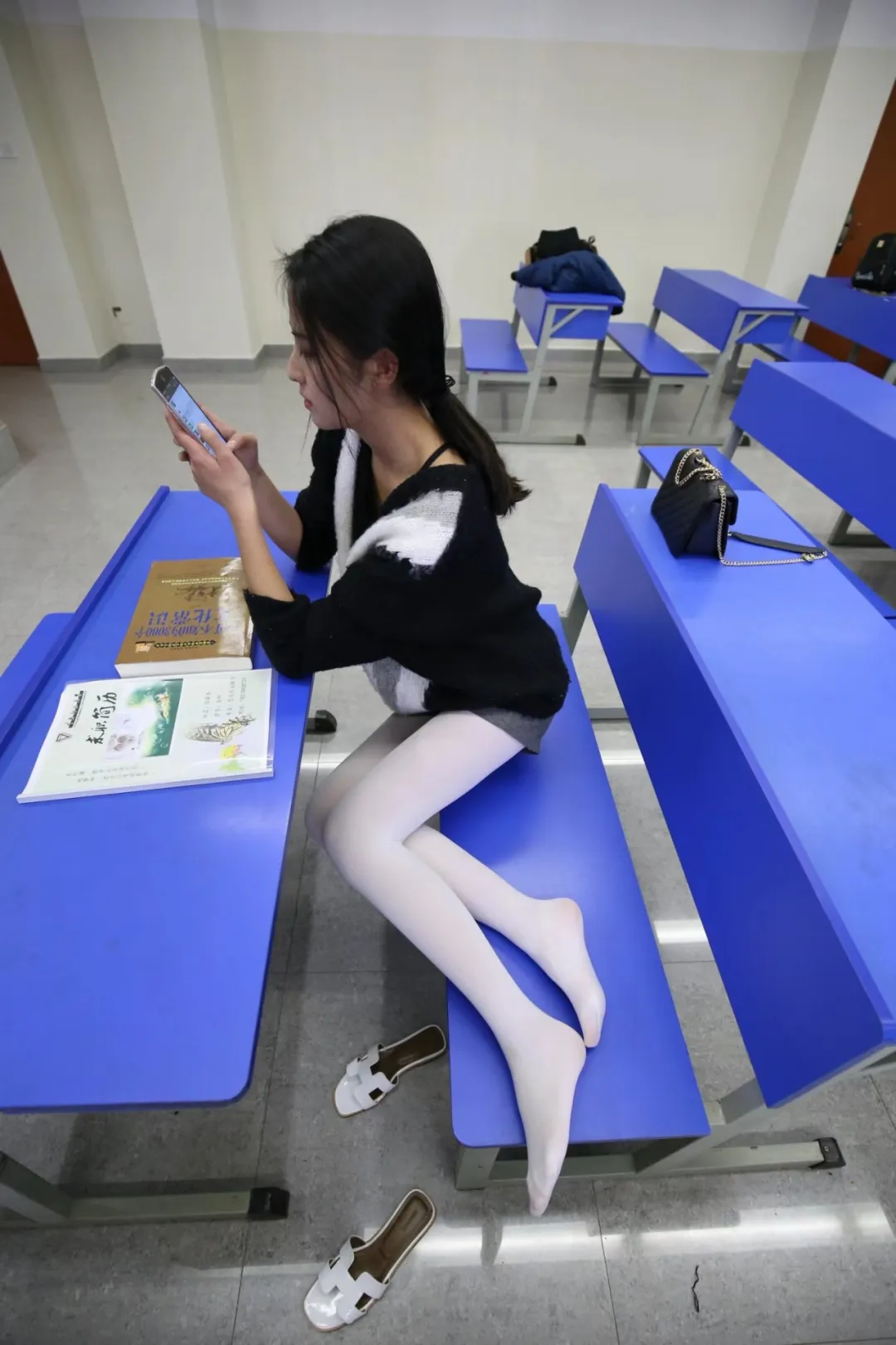 就像有人说的,“时尚总是需要付出一些代价的”。而且,如今的白色连裤袜材质多样,有些具有一定的防污功能,也算是在时尚与实用之间找到了一个小小的平衡点。 再看女大学生脚上那双白色简约凉鞋,它与白色连裤袜就像是一对默契十足的姐妹花。凉鞋的简约设计,没有过多的装饰,却有着一种质朴的美感。它与白色连裤袜相互呼应,共同营造出一种清新、自然的氛围。当女大学生穿着这一身走在校园的小径上,阳光洒在身上,白色连裤袜和凉鞋反射出柔和的光芒,仿佛整个人都在发光。 在校园的课堂上,女大学生穿着这样的搭配,坐在教室里,也成为了一道独特的风景线。那宽松的毛衣让她可以自在地伸展身体,在知识的海洋里尽情遨游。而白色连裤袜,在课堂的灯光下,显得更加纯净。偶尔,老师的目光扫过,或许也会在心里暗暗赞叹这青春的时尚。同学们之间,也会相互交流穿搭心得,白色连裤袜自然成为了热门话题。有人会问:“你这双白色连裤袜是在哪买的呀?感觉特别显腿长。”也有人会说:“我觉得搭配这种凉鞋真的超好看,你还有没有其他搭配的方法呀?”在这样的交流中,白色连裤袜不仅仅是一件衣物,更成为了女大学生们交流时尚、分享快乐的纽带。 在校园的社团活动中,女大学生穿着这一身更是吸睛无数。无论是参加文艺表演,还是户外的运动活动,白色连裤袜都能展现出不同的魅力。在文艺表演时,它就像芭蕾舞演员的舞袜,为表演增添了一份优雅与灵动;在户外的运动活动中,它又能展现出青春的活力与朝气。