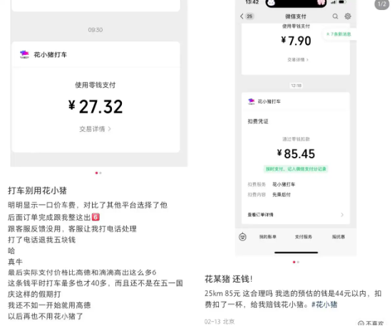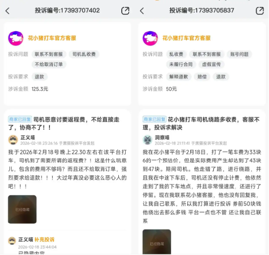 正值春节假期出行旺季,打车平台“花小猪”遭大量投诉。