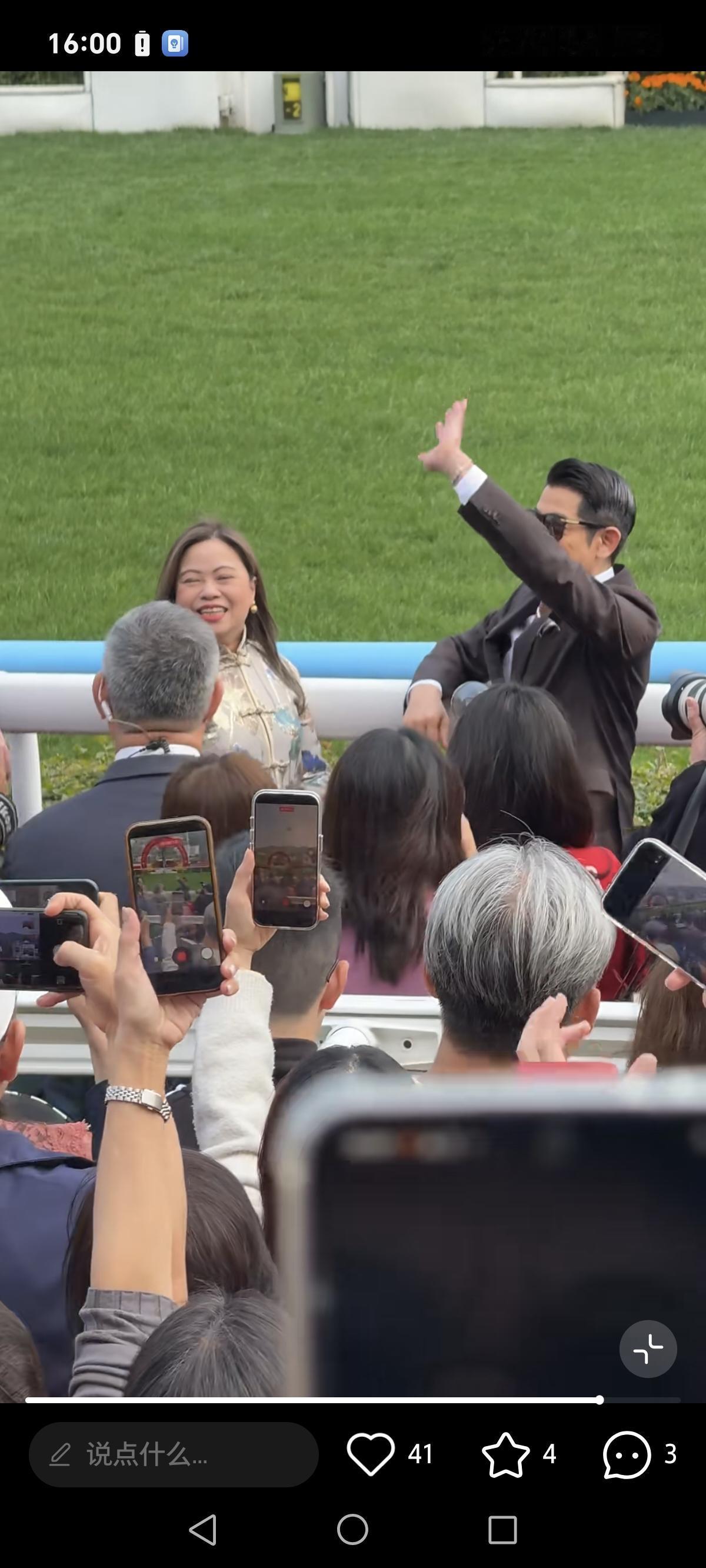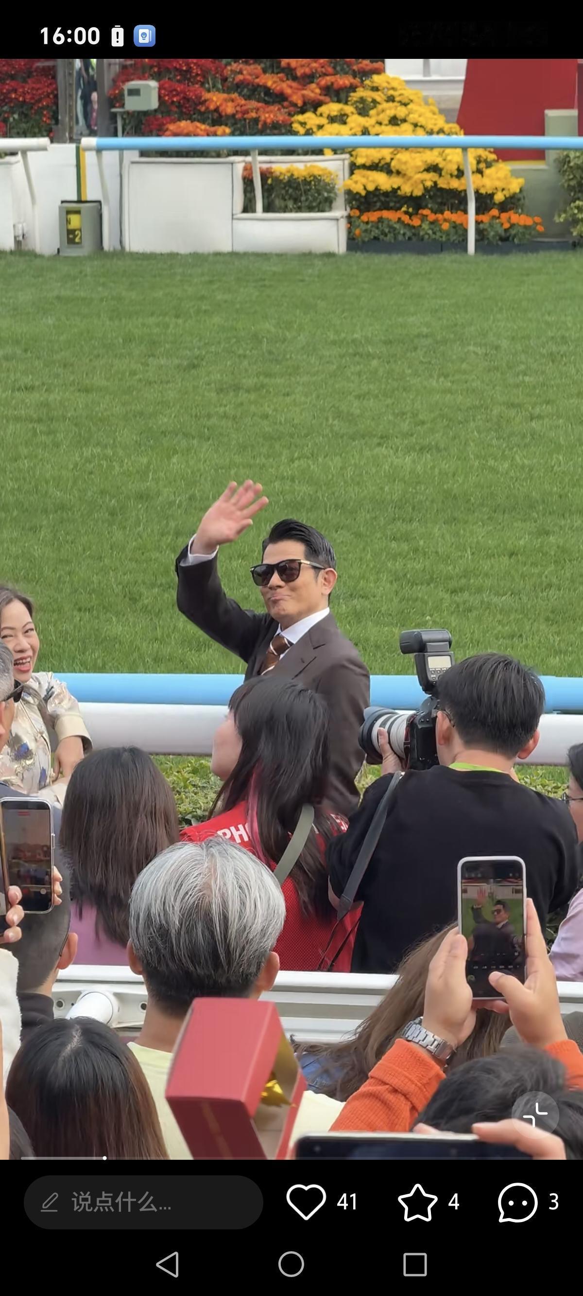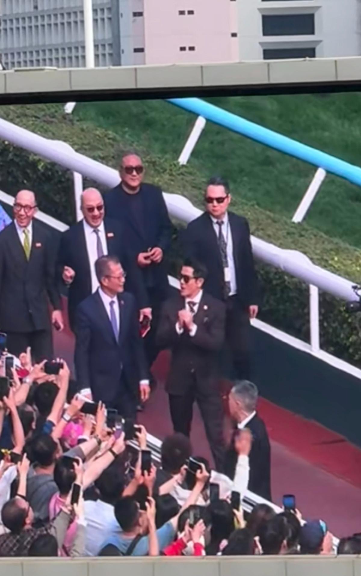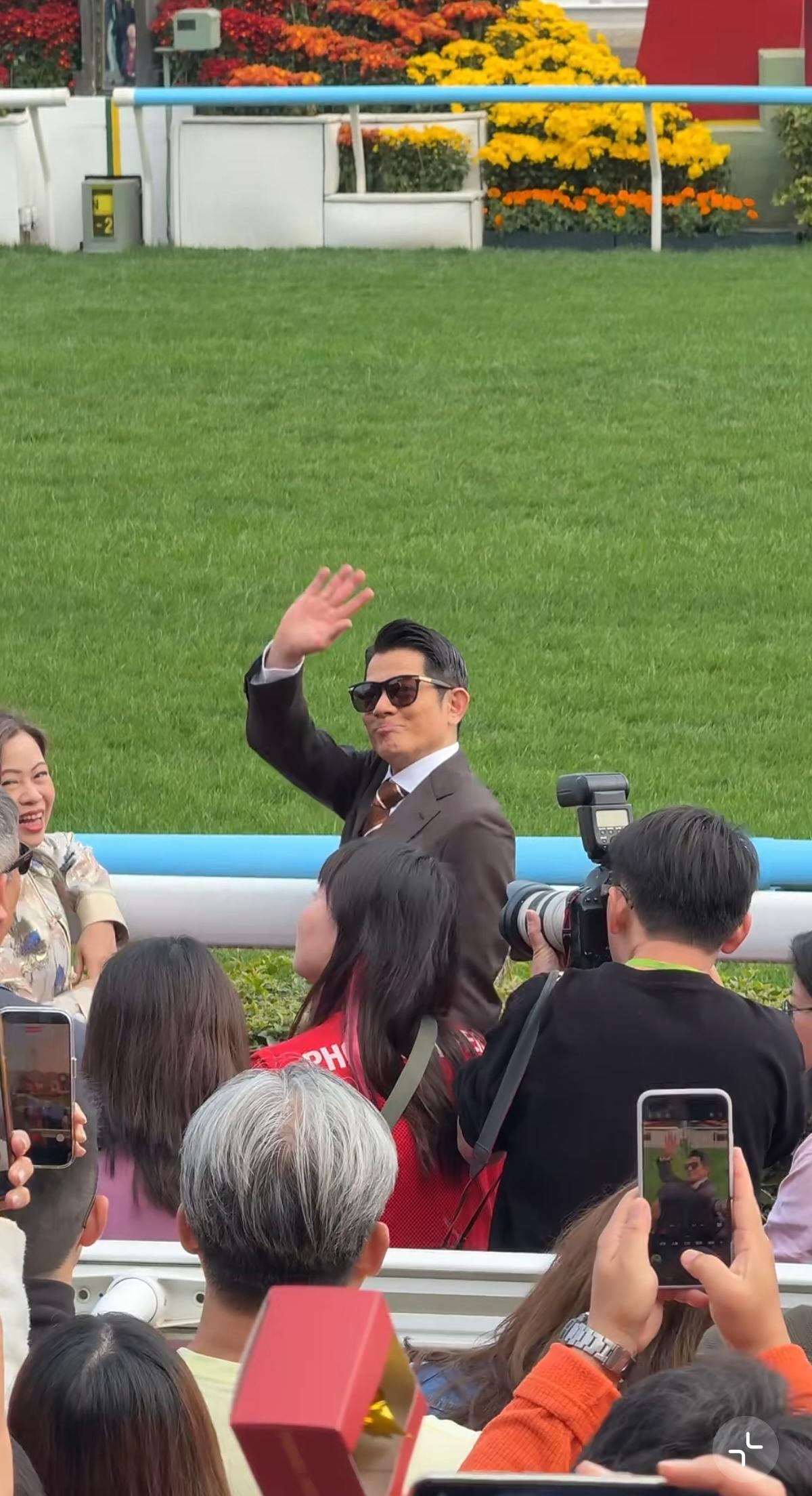 郭富城参加赛马会,对春晚似乎意犹未尽,打扮像新郎居C位,这次真的火了! 2月19日,郭富城西装革履现身中国香港沙田马场观看赛马会,这次他的马不出来参加比赛,他是过来工作的,是马年大使。 2月16日的除夕夜,郭富城在央视春晚上与王一博合作表演《闪耀动起来》,火遍大江南北。 法拉利老了还是法拉利,郭富城30多年前刚走红时跳舞就很好,一直到现在61岁了,动作依然那么灵活,很让人佩服。 加上他与90后顶流王一博合作,这次春晚过后,郭富城真是火得不要不要的,感觉比他刚出道时还要火。 而郭富城一身西装打扮,现身中国香港的赛马会,虽然戴着墨镜,但不停地抿嘴偷笑,眼角炸开花了,感觉他还沉浸在春晚的气氛当中,没有走出来,对春晚意犹未尽。 粉丝们看到郭富城便开始尖叫拍照,郭富城热情地伸手打招呼,他知道自己火了,脸上有挡不住的笑容。 在马场跟几位大佬一起聊天时,郭富城明显是居C位的,在最前面最重要的位置,不得不说,郭富城虽然61岁了,但经过马年春晚的表演之后,事业又要进入一个新的巅峰期了。 郭富城头发乌黑,把头发梳得整整齐齐,穿了西装以后,从背影看身材还有点魁梧,没那么矮了,就像新郎官一样神采奕奕,完全看不出来是61岁的老头。 这精神劲头,感觉他再火20年没问题,而且他还有可能再次登上央视春晚的舞台唱歌跳舞!