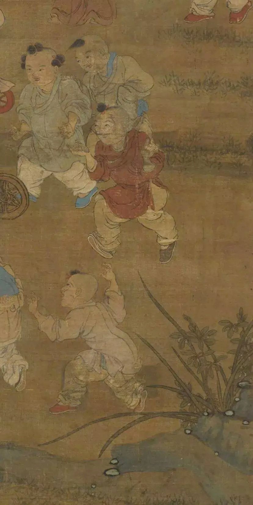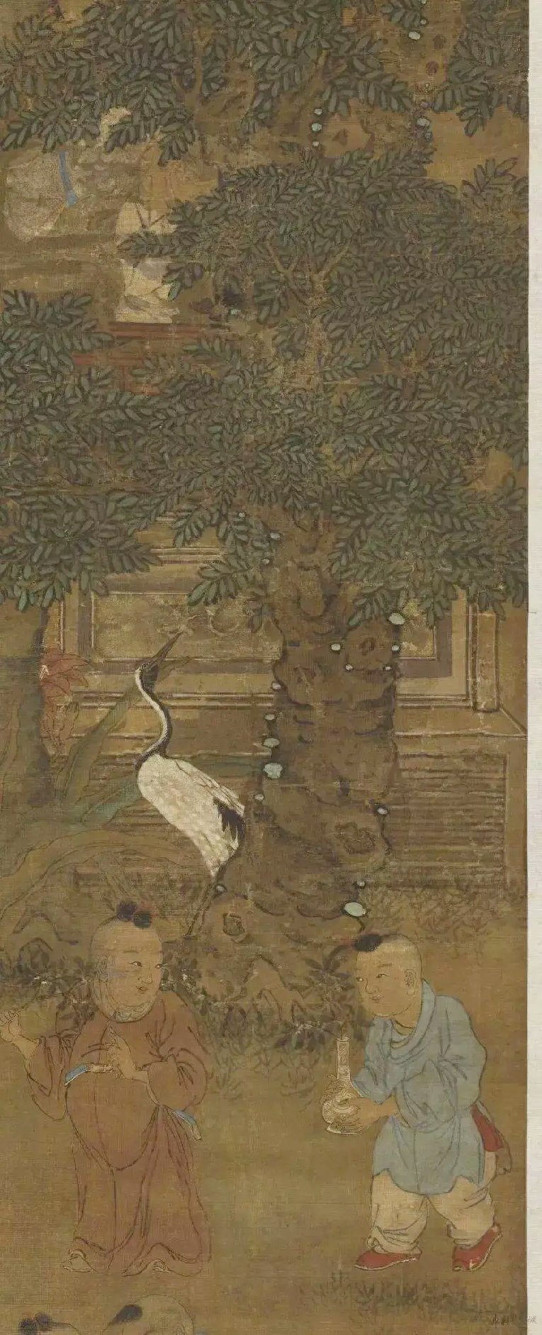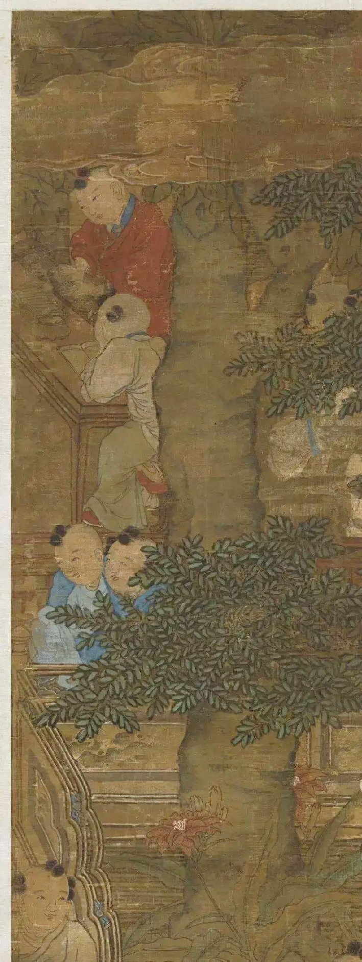 仇英《人物图》,绢本 立轴 设色 182x58.9 厘米,台北故宫博物院藏。绘庭院中群婴嬉戏之欢乐景象。或弹琴、或骑木马、或读书等,表现出孩童生活的情趣。此图人物画法与仇英平日笔不相类近,恐系后人伪托。这就是中国风遇见艺术