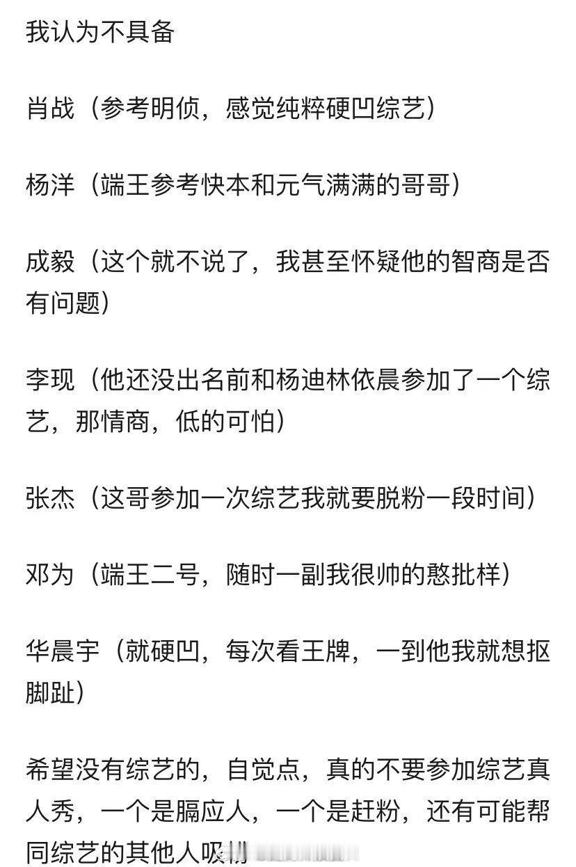 有网友盘点了内娱最具备和最不具备综艺感的当红男艺人,你认同吗?🤔️