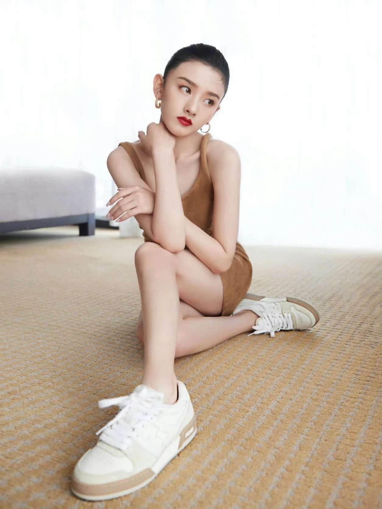 宋祖儿机场路拍超短,黑丝,平底鞋!