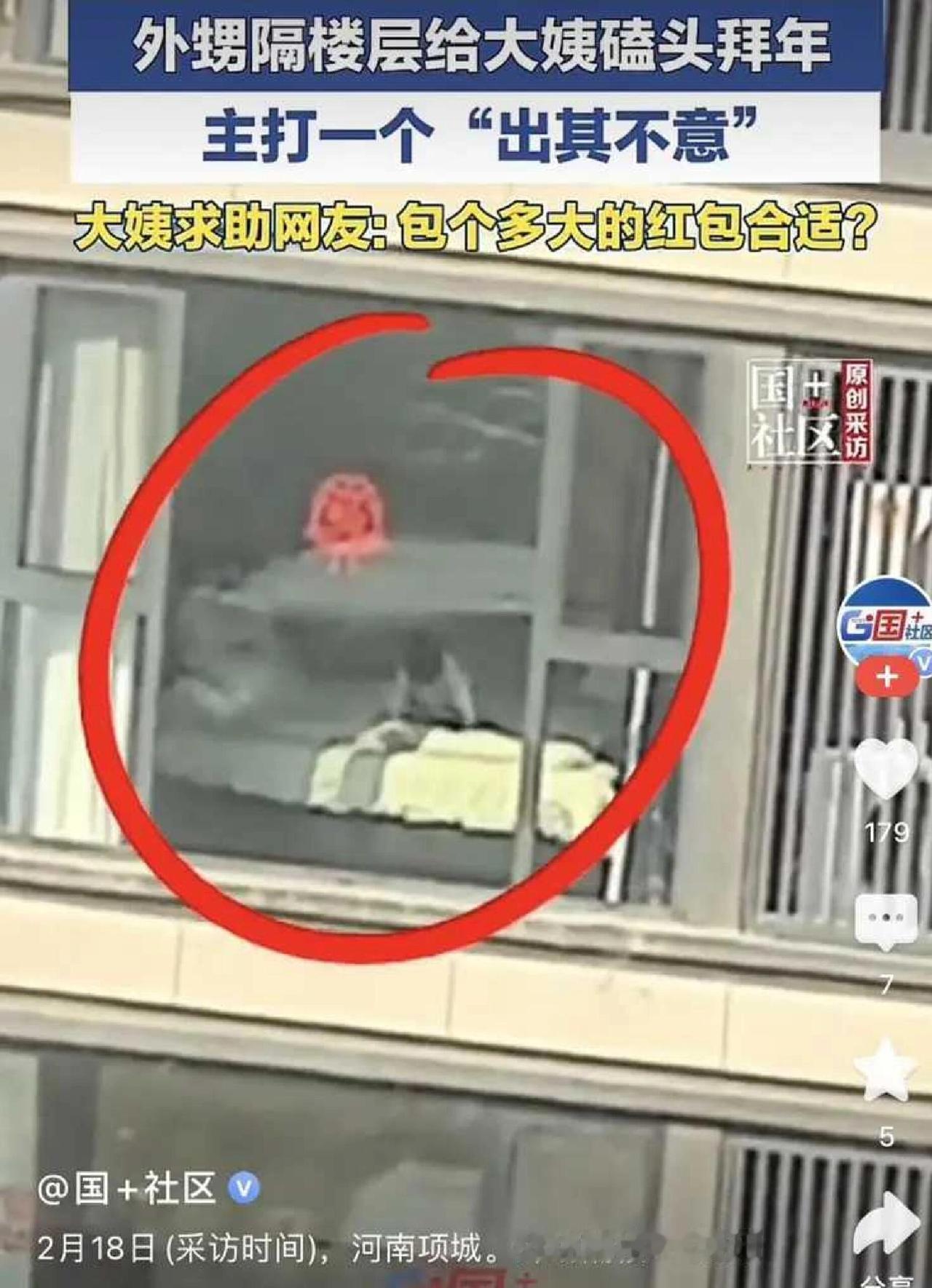 大年初一早上,河南项城的杜女士正端着碗吃饺子,刚咬一口,习惯性往对面楼瞅了一眼。这一瞅可好,差点没把嘴里的饺子喷出来! 她那外甥,就住对面楼,这会儿正端端正正跪在床上,脑袋冲她这边,咣当就是一个头磕下去,实打实的,隔着窗户都能感觉床板在晃。 磕完还抬头看看,见大姨还在看,接着又是一个。杜女士笑得碗都端不稳了,这孩子,绝对是早蹲在窗边,就等她这一眼呢! 她赶紧放下碗,掏出手机就给外甥转钱。这压岁钱不给不行啊,人家这头都磕到床垫里去了! 说起来,杜女士和妹妹住一个小区,两栋楼对着,平时往对面一看就知道他们在干啥。但这波操作,她是真没想到。 外甥上初中了,平时见面都不怎么说话,害羞得很。谁能想到他能想出这么个拜年方式?又实在又可爱,把大姨的心都给磕软了。 杜女士把这事儿发网上,网友们也乐坏了,有人说:“这头磕的,没个万八千都对不起孩子的诚意!”还有人开玩笑:“无需包红包,给他双倍磕回去就行。” 以前拜年得上门,得走路,得提着东西。这孩子倒省事,隔着窗户对个眼神,就能完成一套完整的拜年仪式。孩子省了路,大人省了事,红包还是那个红包,年味儿一点没少。 没有大场面,没有漂亮话,可这隔着几层楼的拜年,却成了今年春节最让人暖心的画面。它让人看到,过年最本真的意义,从来都不是走亲访友的热闹,而是藏在日常烟火里那份永远不变的亲情。 说到底,压岁钱给的是钱,传递的是情。孩子磕个头,大人给个红包,一来一往,年的味道就出来了。至于这头是在门口磕的还是隔着窗户磕的,根本不重要。 杜女士最后包了个大红包,不为别的,就为孩子这份心意,这份让年味更浓的质朴举动。你们说,这样的外甥,该给多大的红包合适呢?