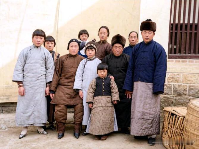 这是民国时期一个富裕的商人大家庭的全家福合影。 那个时候的人讲究尊卑有序,所以在合影的时候并不是随便站的! 父母长辈需要坐在正中间,左右两边则站着他们的子女。 而剩下的人则只能站在最后面。清末民国老照片