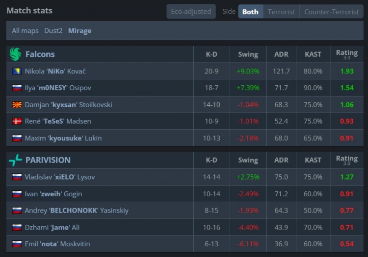 Falcons:NiKo、TeSeS、kyxsan、kyousuke、m0NESY