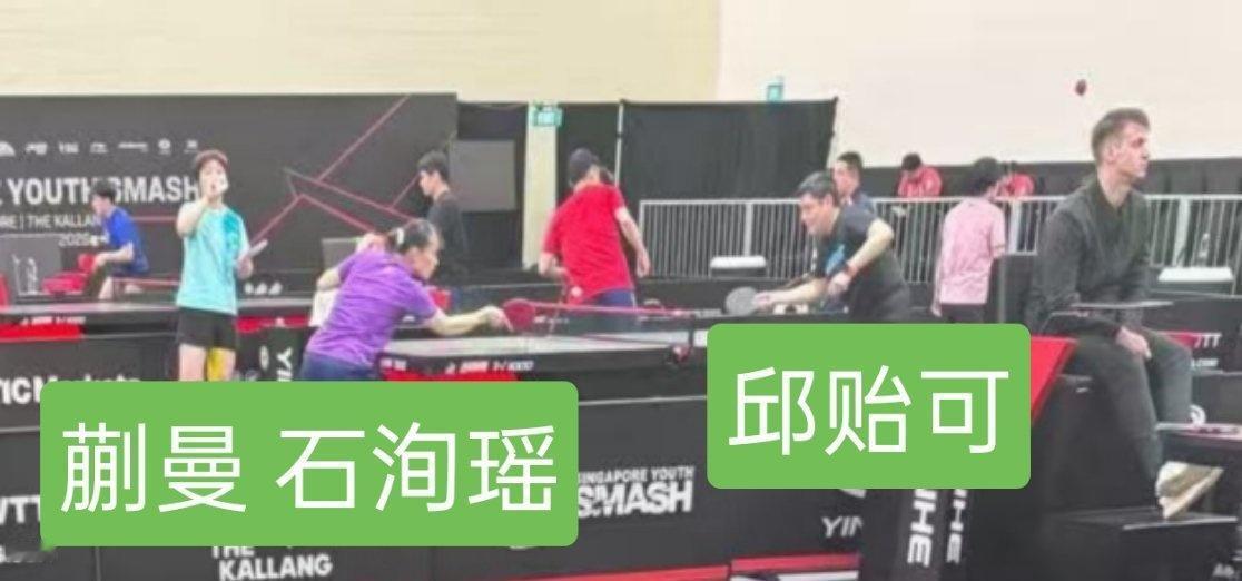肯定是今天的图,因为看到了今天两位的装扮,一模一样哈。邱贻可在给蒯曼和石洵瑶训练,那请问孙颖莎是自己练习吗?孙颖莎的主管教练呢[what][what][what]