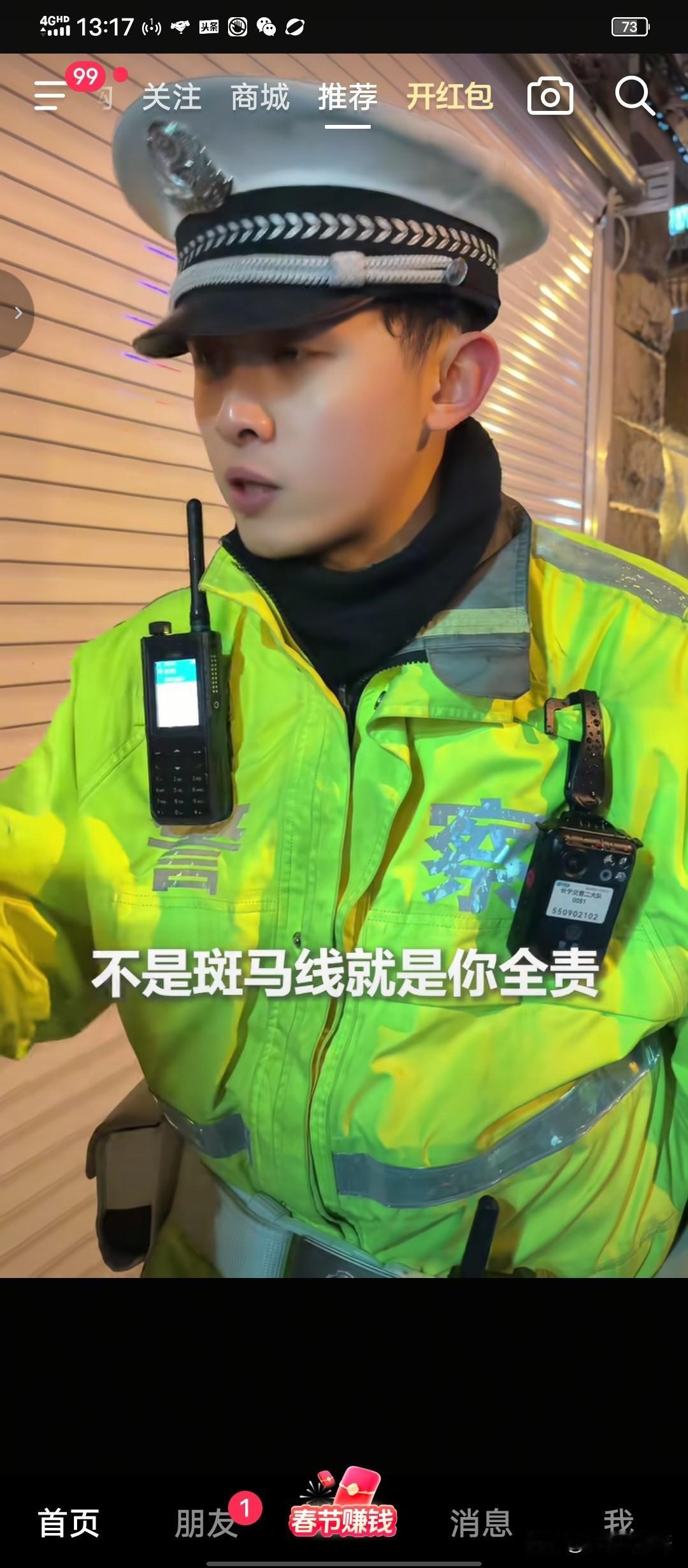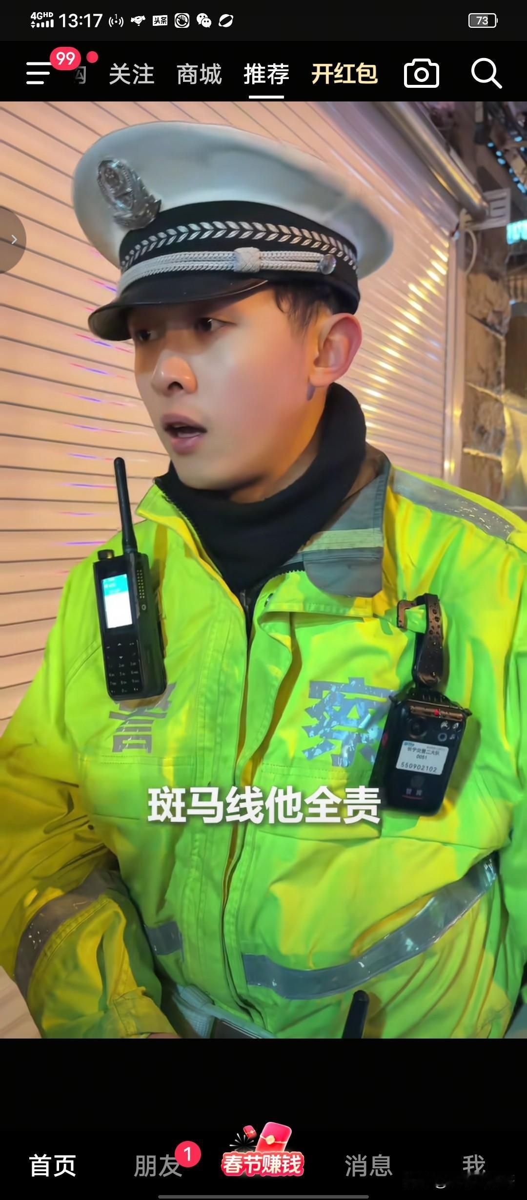 这个交警必须点赞,没判电动车次责! 刷到人民日报发布的一段视频。 一个行人过马路,不走斑马线,跟一辆电动车相撞,交警判行人全责。 行人不服,理由是过马路时他也在观察,双方因为都穿黑色衣服,都没看见对方,以致于相撞,怎么可以判行人全责。 交警直接告诉他判你全责理由很简单,你走斑马线对方全责,你不走斑马线你全责! 行人说平时我看马路上人被小车撞了,都是小车全责 。 交警告诉他,行人如果走在斑马线上,行人的路权就是比机动车大, 无论怎样机动车都要让行人。这是法律规定的。 行人说不是说我不对,我有责任,但是怎么我全责了,他把我撞了,他应该也有一定责任呀。 行人的意思认为我是人,对方是车,把我撞了,无论怎么样他都要判定承担次责。 交警直接了当告诉他, 你不走斑马线,走在机动车道路上,那是他的路, 人家有什么义务要让你? 前面五米就有斑马线你不走,现在被车撞了,就是你自己的责任! 这个交警法律法规掌握娴熟,不和稀泥,有理有据, 判定行人全责,无可辩驳!