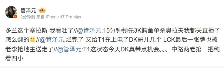 T1vsDK第四局 管泽元吐槽Doran:多兰这个塞拉斯 我看吐了