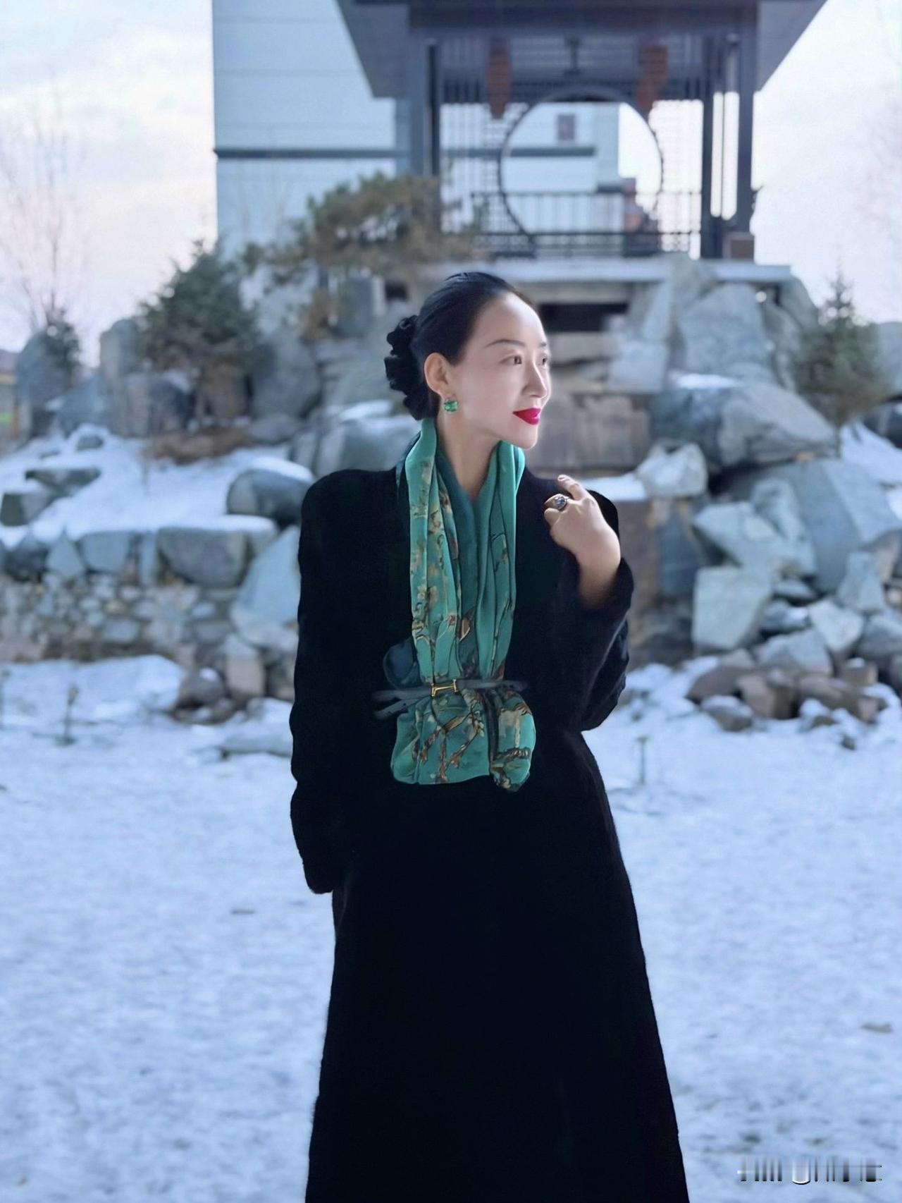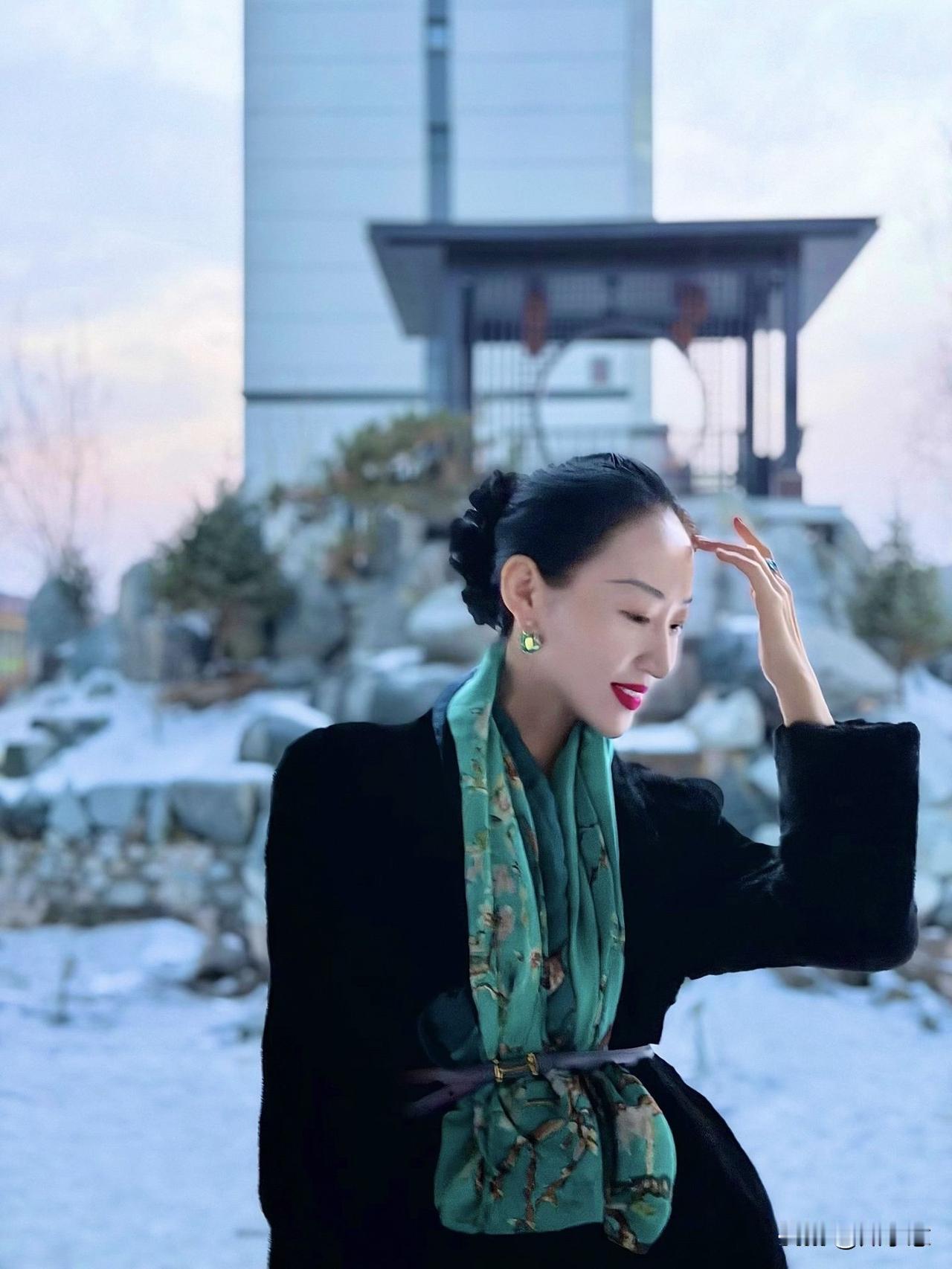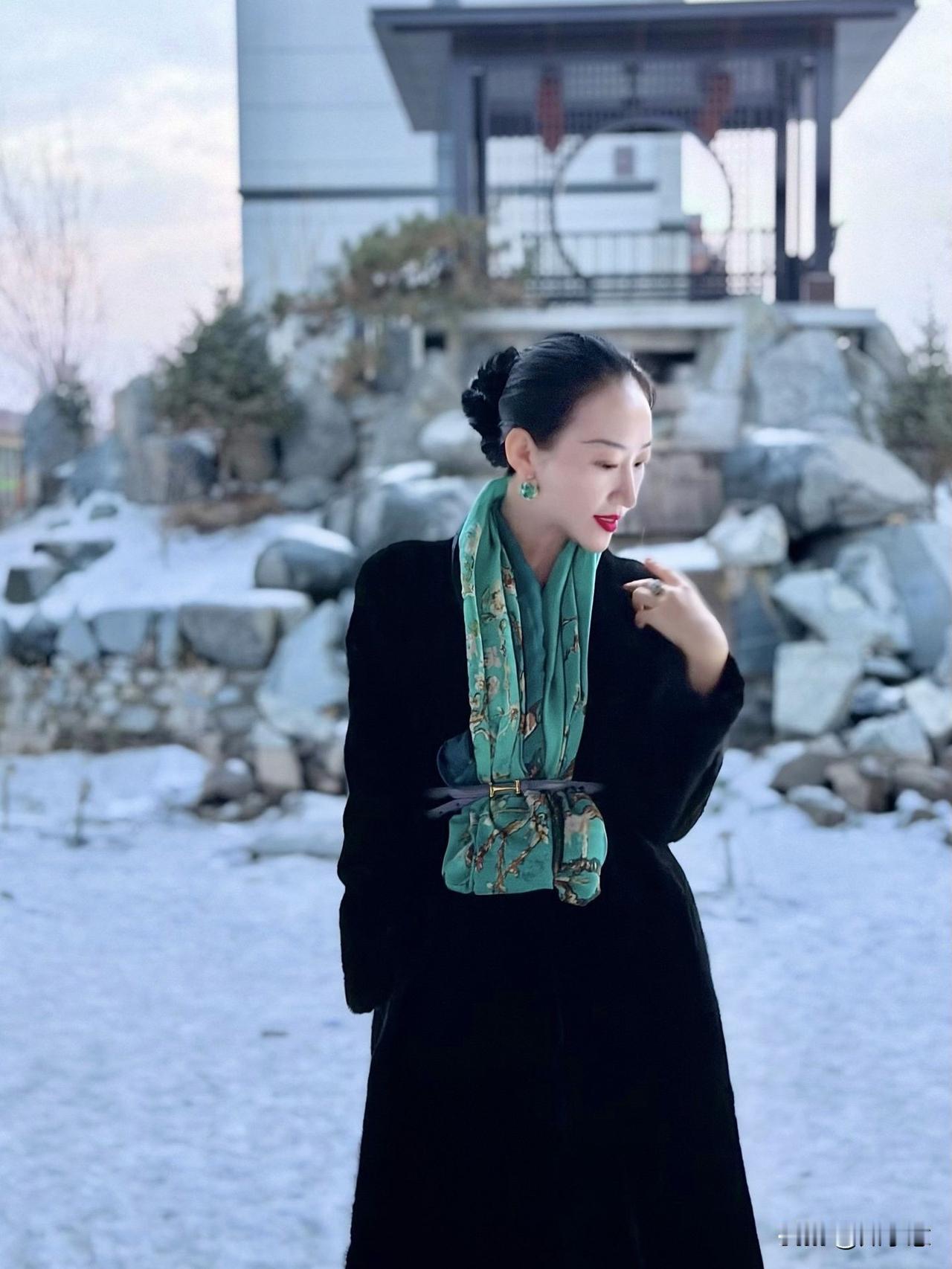 冬日暖阳下,优雅女子轻抚发梢,静享时光。