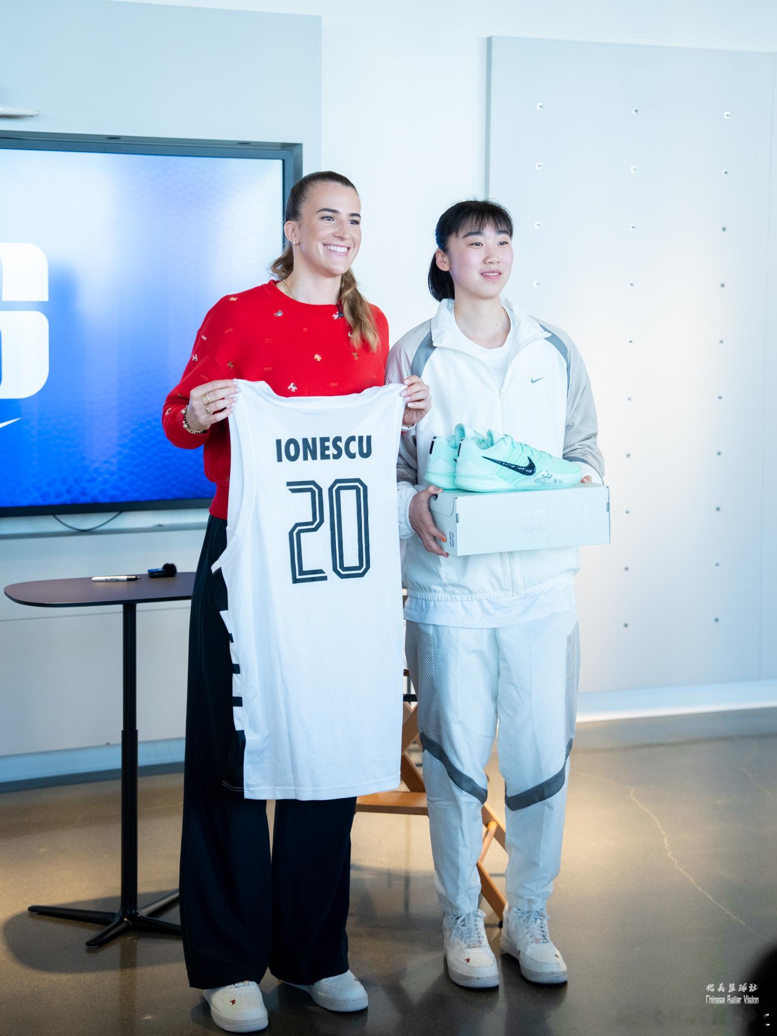 耐高精英美国行 耐高球员们在NBA全明星赛期间在耐克LA总部和萨布丽娜·约内斯库见面聊天,许梦伊收到了偶像的亲笔签名球鞋 萨布丽娜