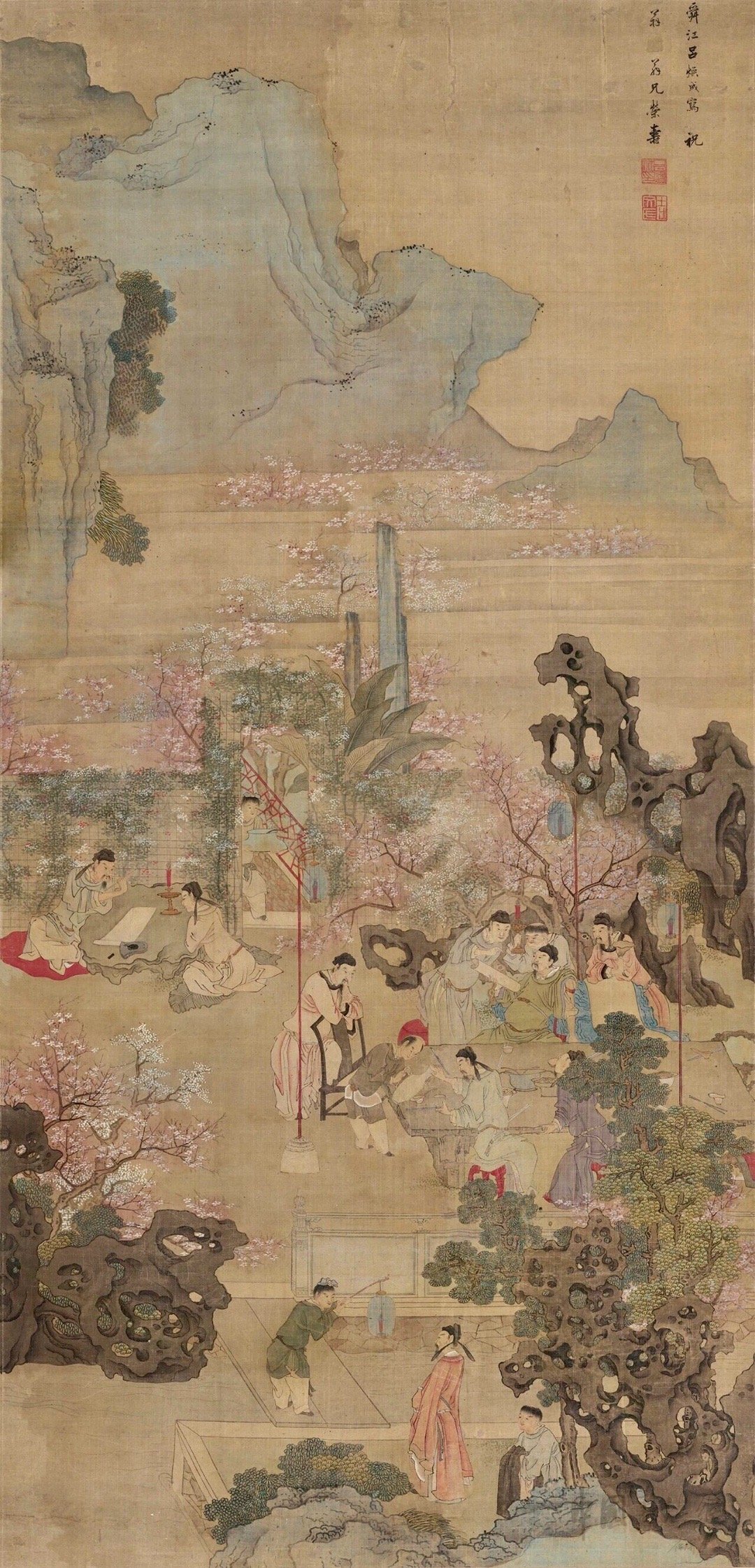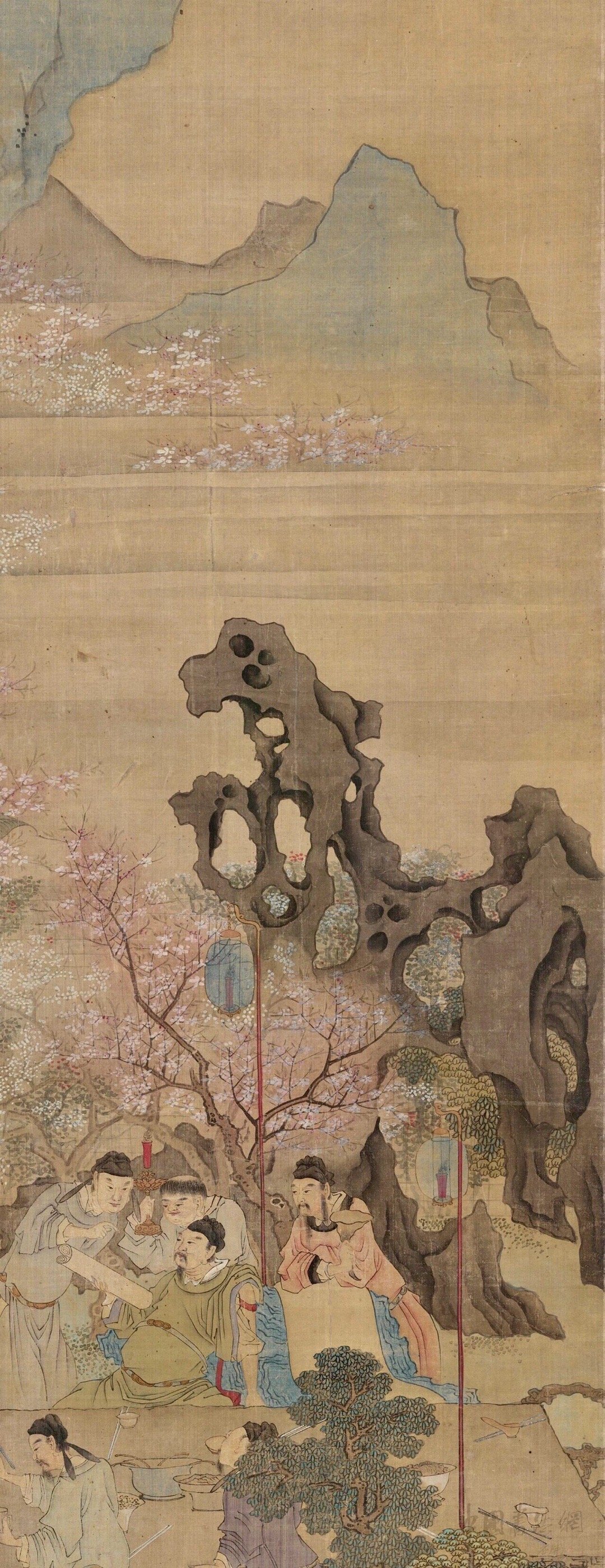 你能找出谁是李白嘛?清·吕焕成 《春夜宴桃李园图》绢本设色 199×96cm
