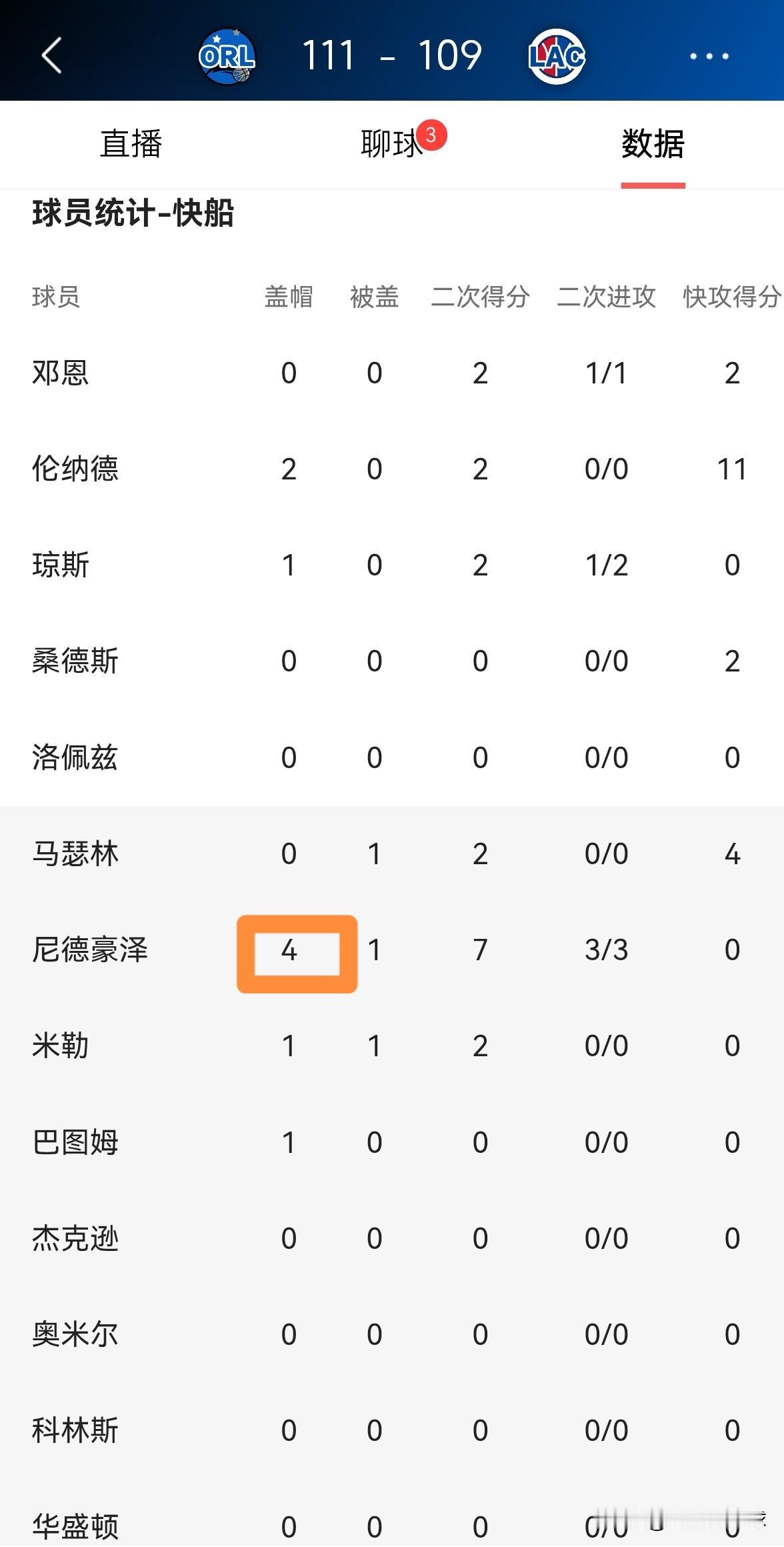 我忍不住要怒赞快船新秀尼德豪泽!虽然今天快船在主场以109:111不敌魔术,但是小将尼德豪泽在攻防两端都打出了非常出彩的表现。 全场比赛下来,尼德豪泽替补出战26分钟,投篮7中3,其中三分球2中1得到7分8篮板4盖帽,他的场上正负值为+2。 以我的拙见来看,如果快船愿意精心培养尼德豪泽,那么尼德豪泽完全能够成为快船未来十年的当家中锋。