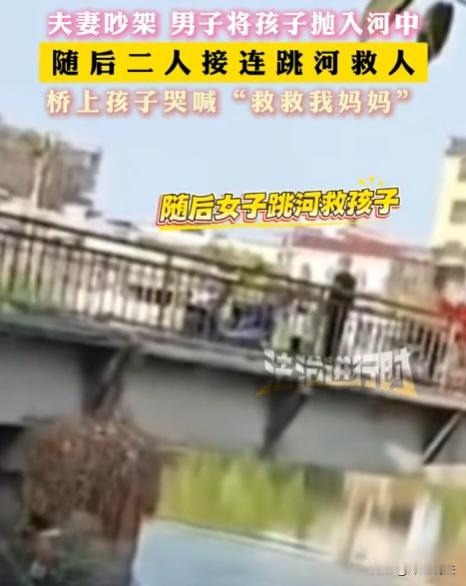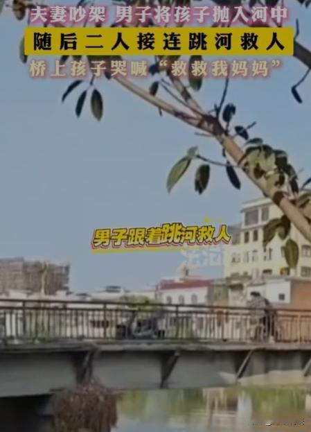 广东潮州,一对年轻夫妻带着俩孩子在桥上玩时吵起来。男子突然暴起,竟抓起小的幼儿扔