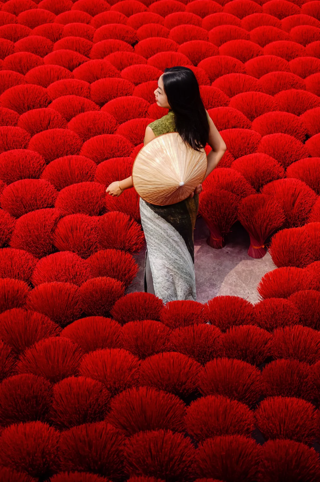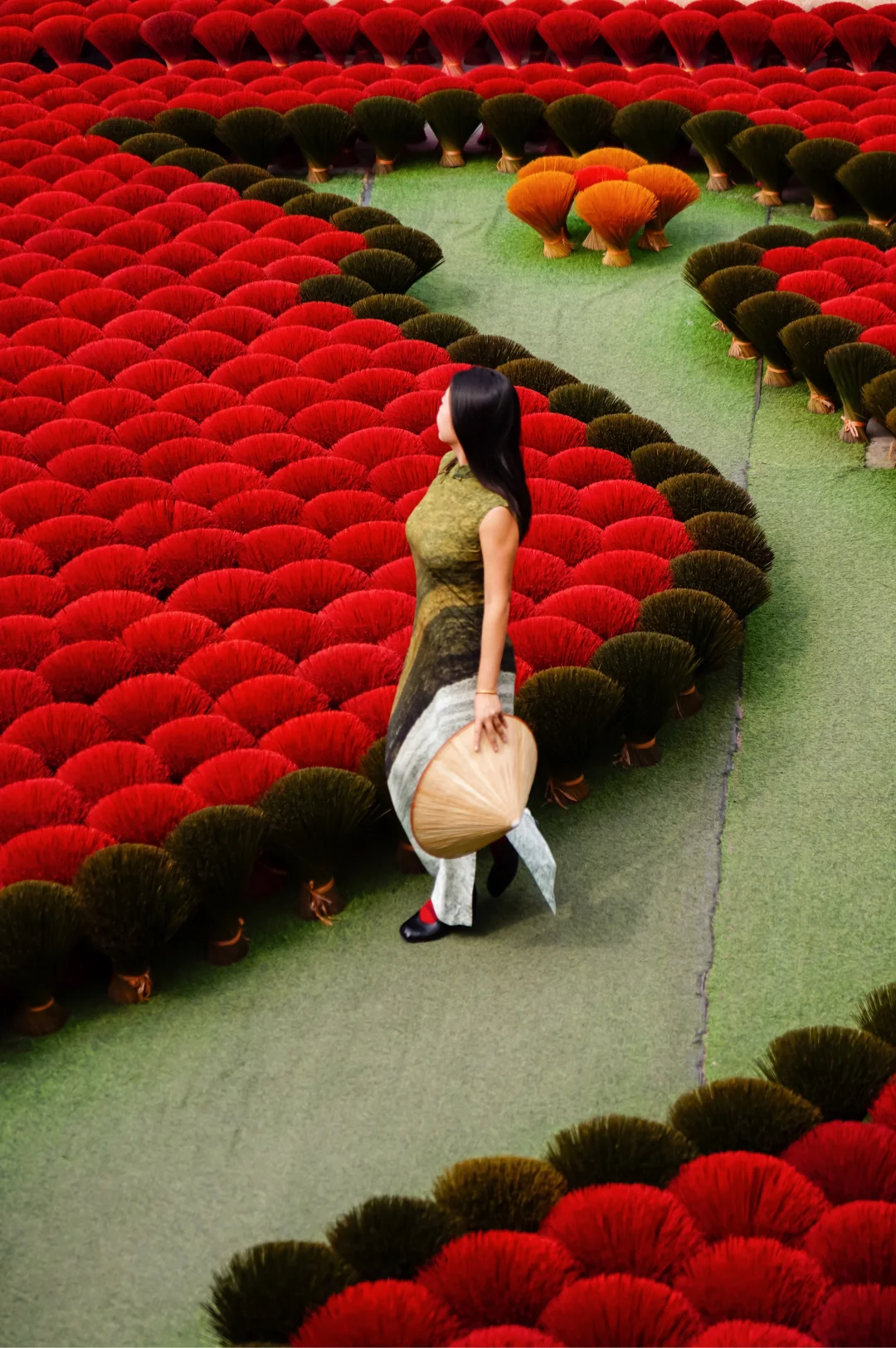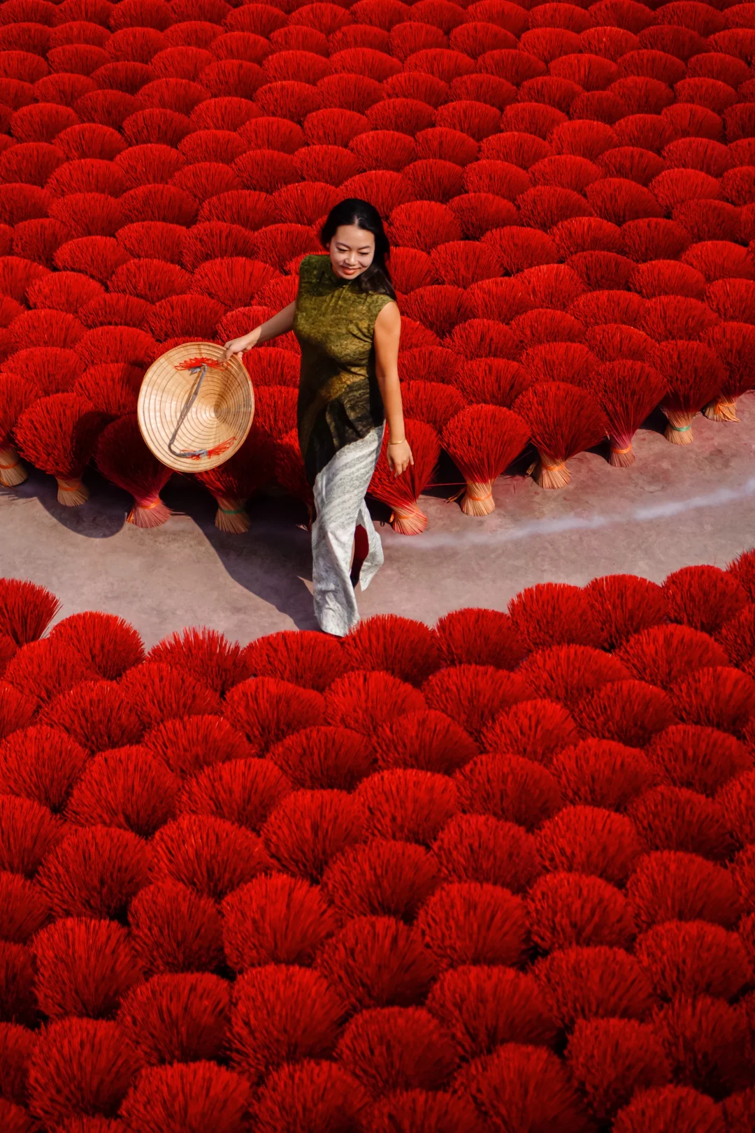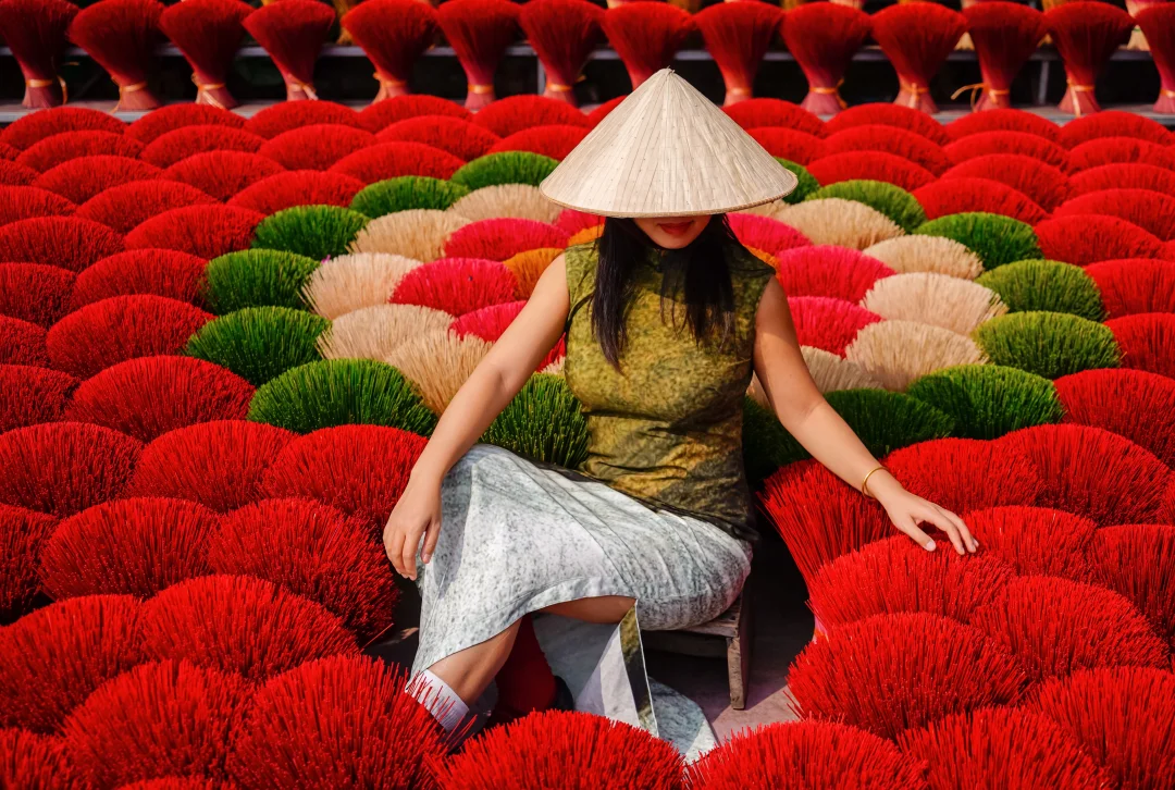N年前看过越南系列人文照片,就把这个地方定为比去行程之一。纵使路途远,是个不大的厂子,也照去无妨。我觉得还行,不算很照骗吧~ 确实是个制香的厂子,顺带搭建个棚拍照多賺一点。村子里很多人家都制香,来的路上就可以看到有人直接把香杆子放路边晾晒。 . 📍定位lang lam huong do(或者quang phu cau),我们骑摩托市区过去约1小时,路上沙尘滚滚,建议带个口罩。 🎫门票拍照50k,服装租赁另外算;人不算多,也有一日游的团带过来参观,讲解如何制作香。 .