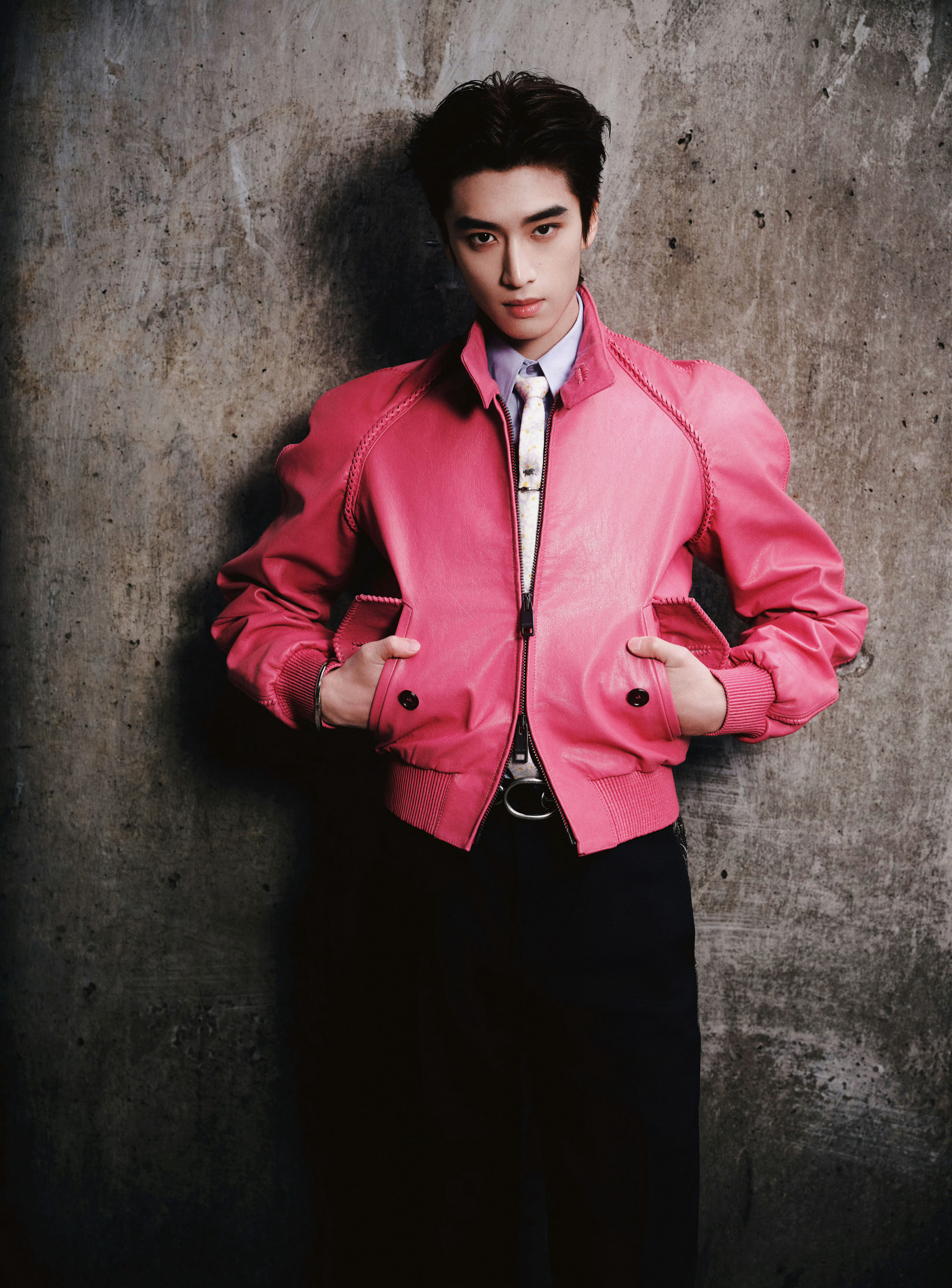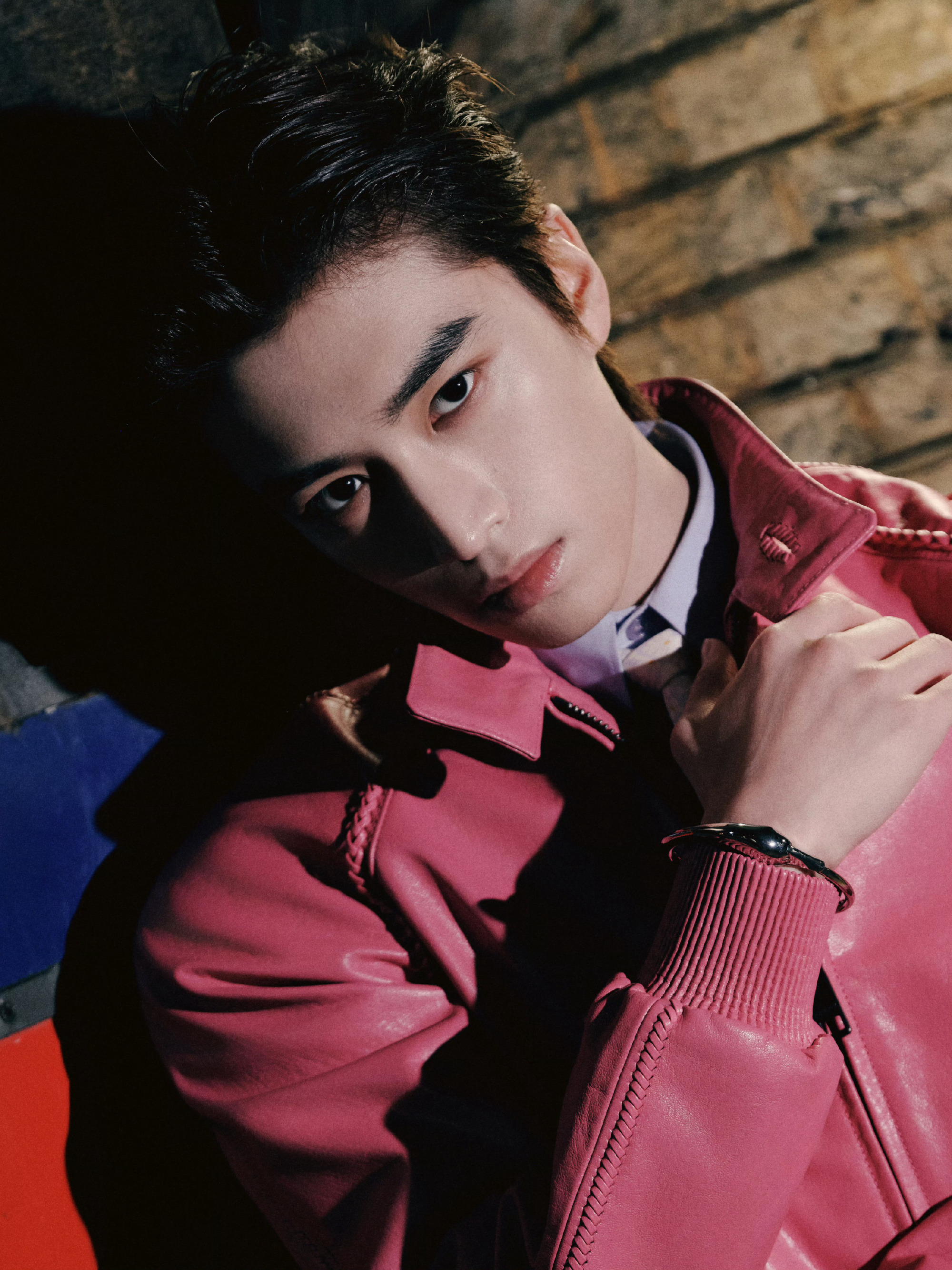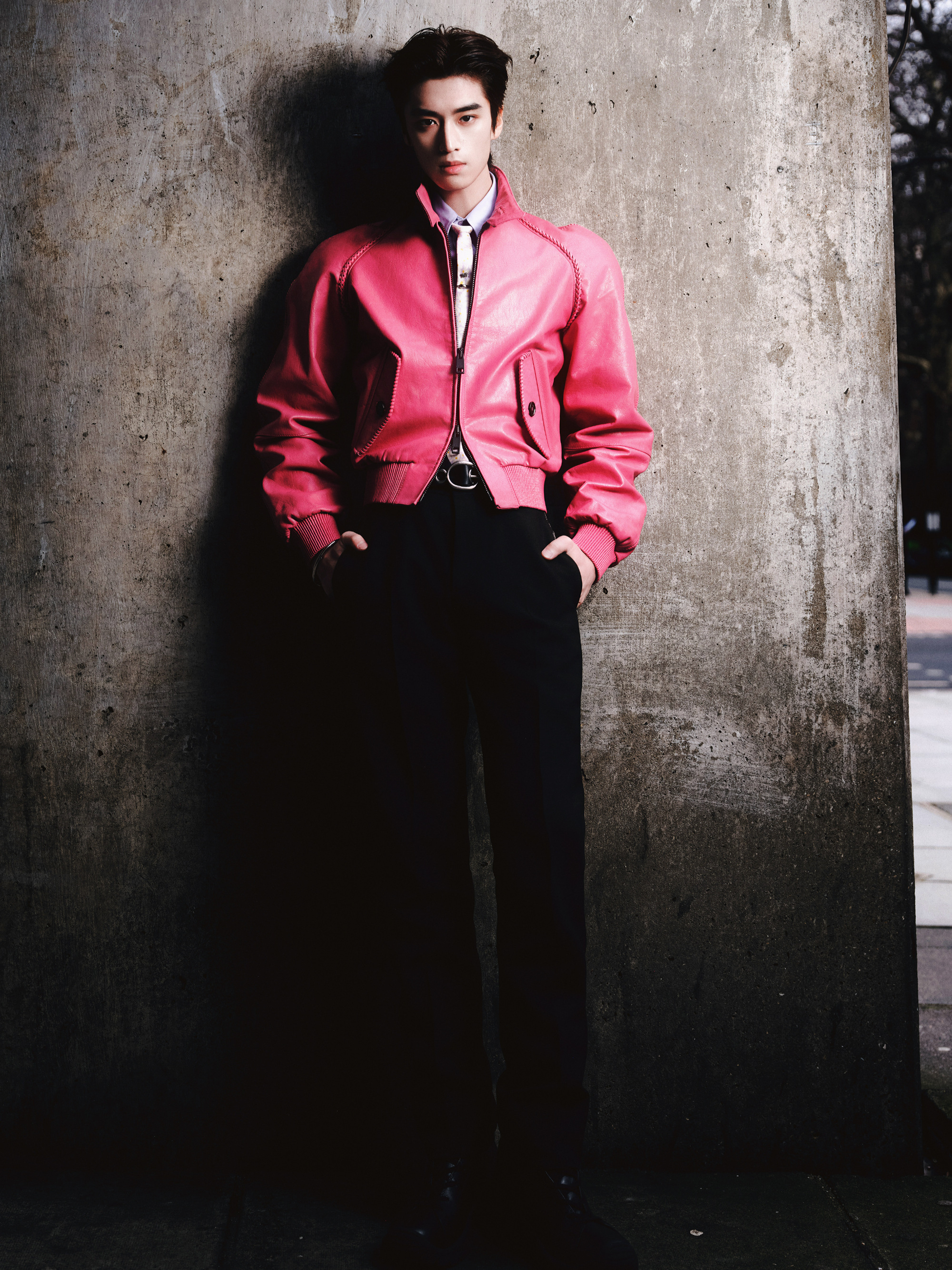 张康乐身穿Burberry 2026夏季系列亮相品牌2026冬季系列大秀,粉色廓形夹克搭配黑色裤装大胆挑战亮色look,演绎的很高级时装周