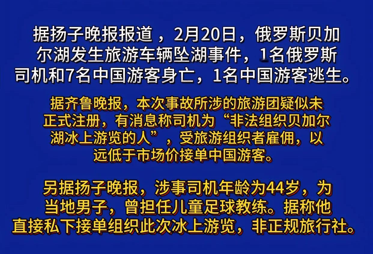 中国对俄罗斯施加压力了!俄罗斯对此事要认真处理!2月21日,在发生一辆载着八名中国游客的汽车在俄罗斯贝加尔湖冰面行驶时因冰裂沉湖,七人溺亡事故之后,中方对俄罗斯施加压力了。中国驻伊尔库茨克总领馆对此表示,总领馆第一时间启动应急机制,紧急联系俄方请其尽全力进行救援打捞并尽快查明事故原因。 评几句: 七条人命沉在异国冰湖,某些西方媒体却忙着给正常的外交协调扣帽子——“施压”二字用得倒是轻巧,仿佛我们连讨个公道都是在搞霸权。 本质是冷血的政治操弄,却被包装成“新闻客观”。BBC、路透社那套老把戏又来了:一边对中国游客的惨死轻描淡写,一边把中方的合理诉求歪曲成“大国施压”。他们嘴上喊着“人权”“生命至上”,键盘上敲的却是挑拨离间的算盘。为什么现在跳出来说?无非是想在中俄之间埋钉子,看不得两个邻国正常处理危机。 说白了,这就是“议题设置”的舆论陷阱。正常领事保护被渲染成外交摩擦,紧急协调被解读为“施加压力”。他们一边指责中国“不干涉内政”,一边对我们正常的领事工作说三道四;一边对七条人命视而不见,一边对中俄互动拿着放大镜找裂痕。这种双标,还不够刺眼吗? 真正目的就是离间中俄,给地区合作使绊子。贝加尔湖是中俄旅游合作的热土,每年数十万中国游客前往。出了事,中方依法启动应急机制、要求查明原因,这是再正当不过的领事职责。到了西方媒体嘴里,却成了“施压”“强硬”。他们怕的不是中国游客的安全,怕的是中俄在危机处理中展现出的默契与信任。 归根结底,人命关天的事,容不得政治化操弄。中国驻俄使领馆第一时间行动,是对公民负责;俄方全力救援、承诺调查,是对邻国负责。这种正常的国家间协作,被恶意解读成“施压”,恰恰戳破了某些西方媒体的虚伪面具——他们根本不在乎那七条逝去的生命,只在乎能不能借此炒一波“中俄不和”的流量。 别被带节奏,说什么“中国强硬外交”。我们的公民在海外遇难,政府站出来要说法,天经地义。倒是那些急着写“施压”标题的编辑,敢不敢问问自己:如果是美国游客在巴黎出事,白宫打电话算不算“施压”?英国公民在悉尼遇难,唐宁街协调算不算“干涉”? 一边是七条人命亟待真相,一边是西方媒体忙着贴标签、带风向。这对比,还不够寒心吗? 所以,那些跟着喊“中国施压”的人,你们真觉得讨公道是错?还是觉得中国公民的命,不配得到一个认真的交代? 现在事故调查还在进行,真相必须水落石出。你站哪一边?说说理由。